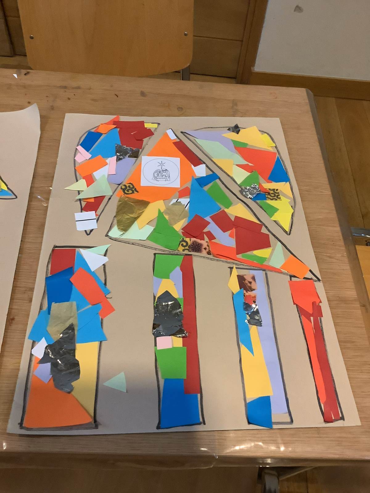 We made a badge with the nativity story on it and also made stained glass windows of our own.