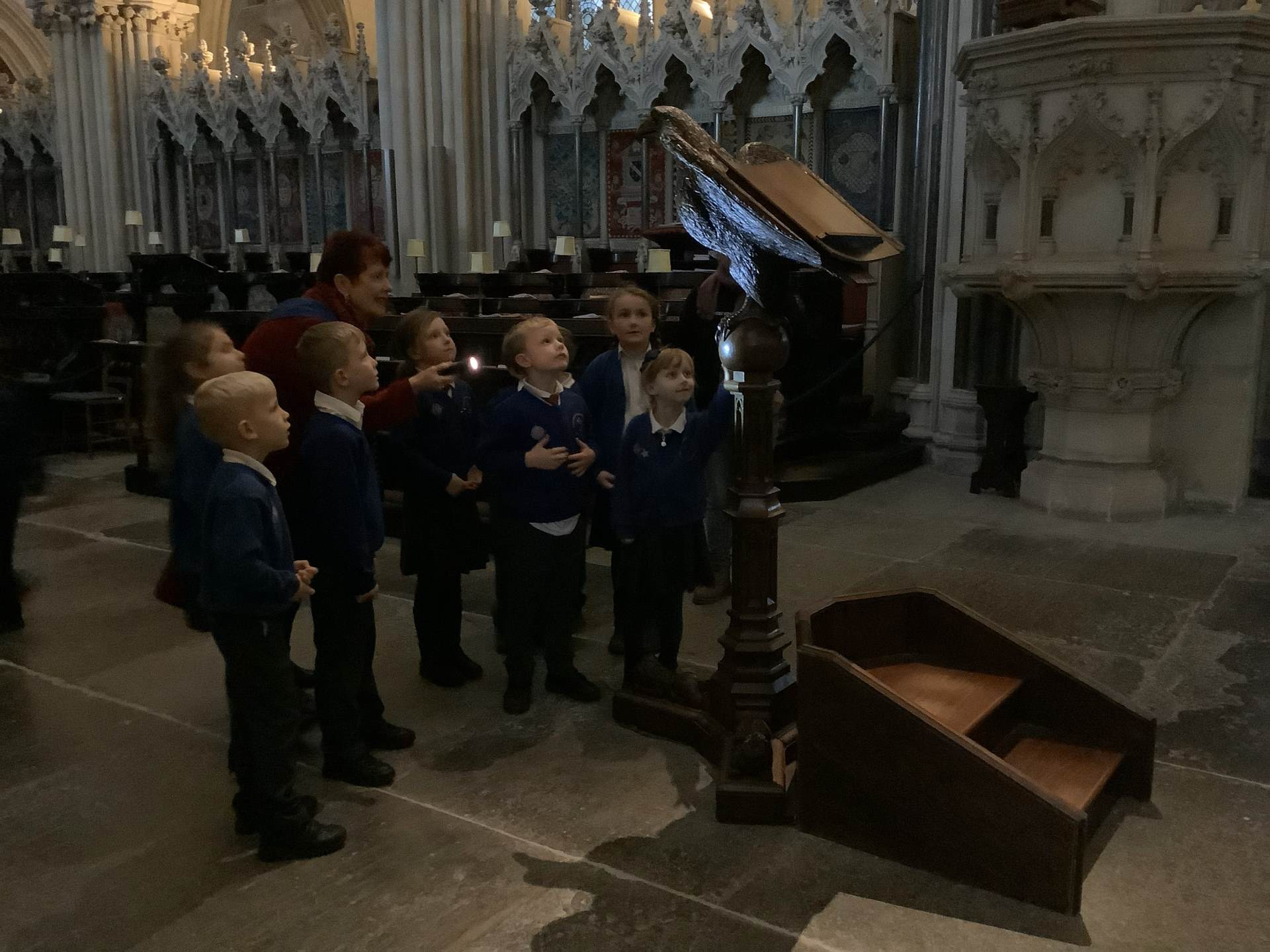 We have been learning more about the Christmas story in our RE lessons. Today we were lucky enough to visit Wells Cathedral. We learnt that it was built in the shape of a cross and lots of people go to services there now. We looked at the beautiful stone work inside and our guide, Nicolas told us lots of interesting things. There is a man called Mr Harewood who has a tomb with hares and a well carved into it!