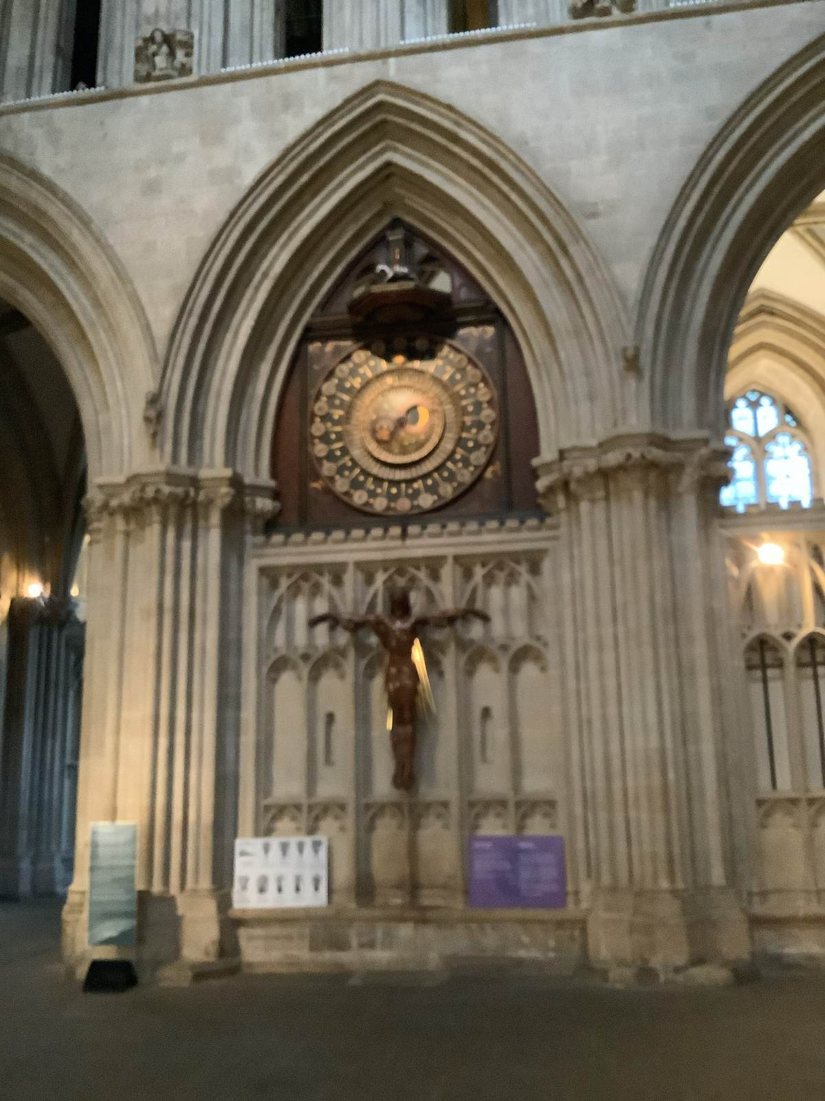 We enjoyed looking around the cathedral and saw stone carvings all around, even on the ceiling! We were lucky enough to watch the special clock chime at 12.00. There are model jousters that twirl around the top and the clock even tells you what the moon will look like in the sky. It is one of the oldest working clocks in the world!
