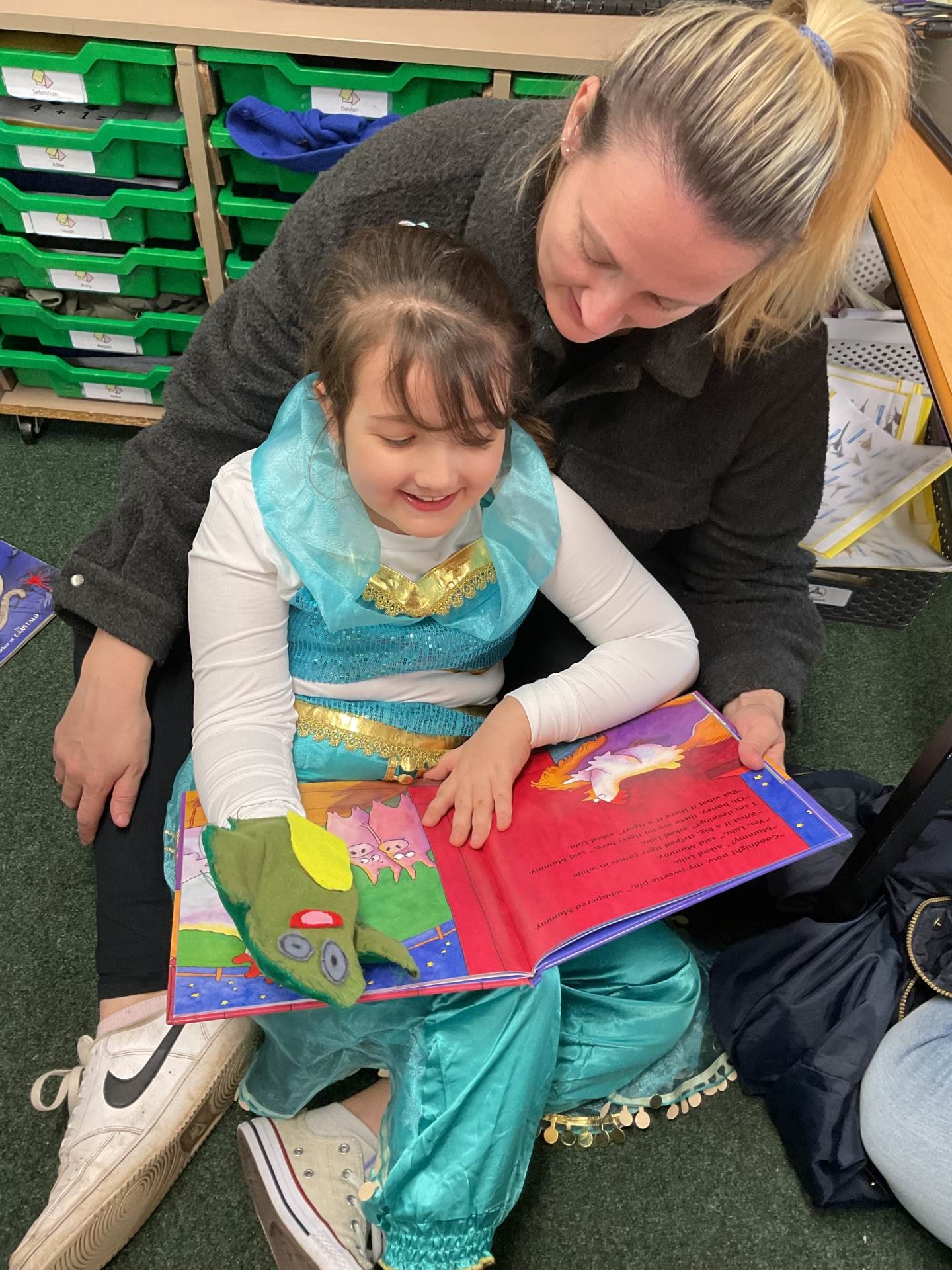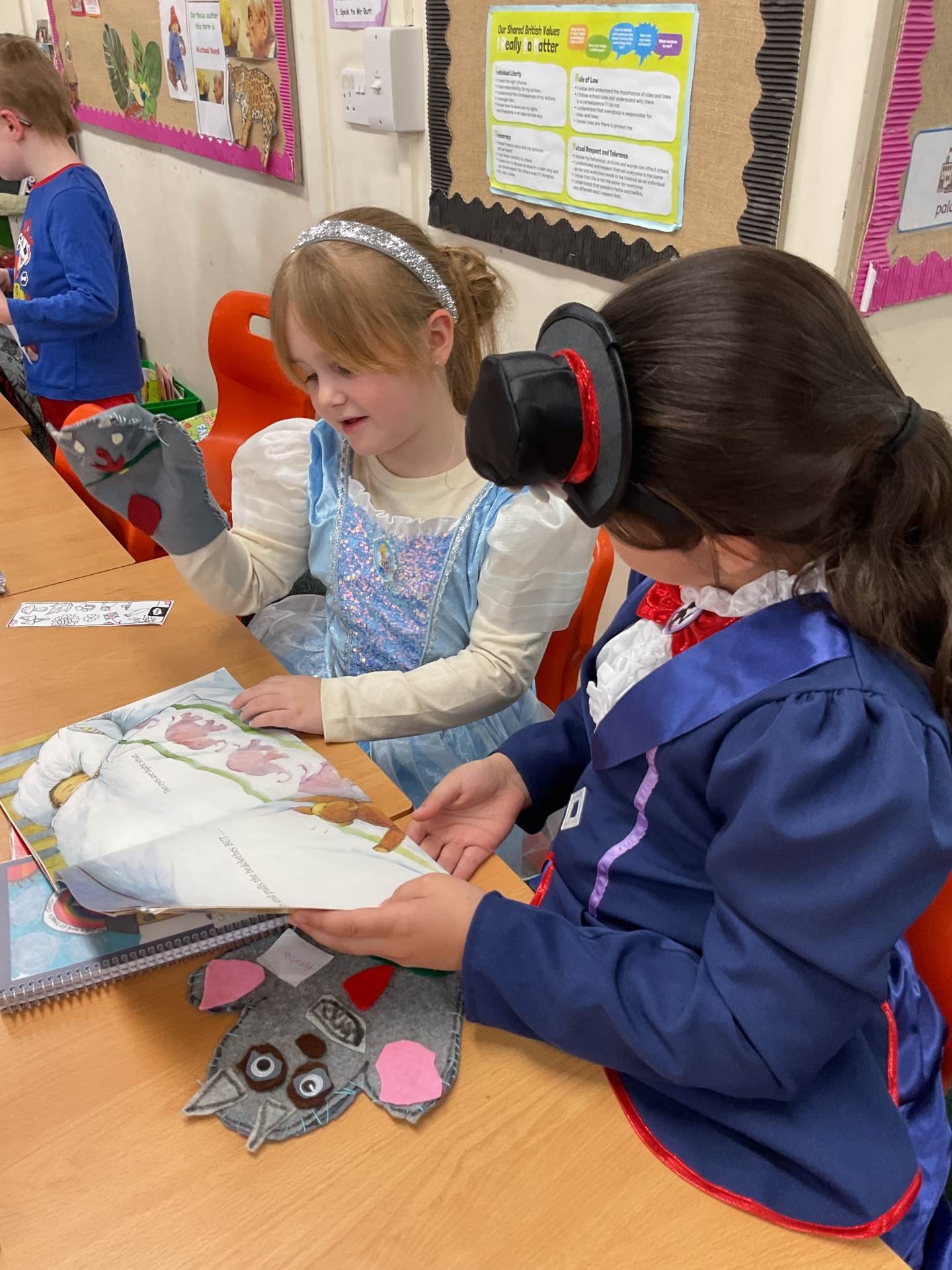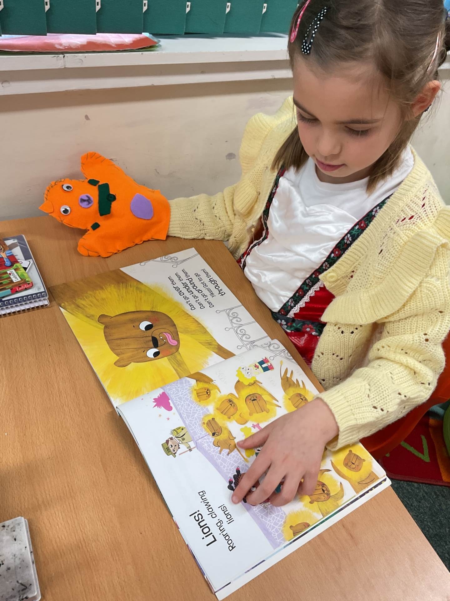 We also invited our grown ups into school to share books with them. We even used the puppets we had made in our DT lessons and read books to them!