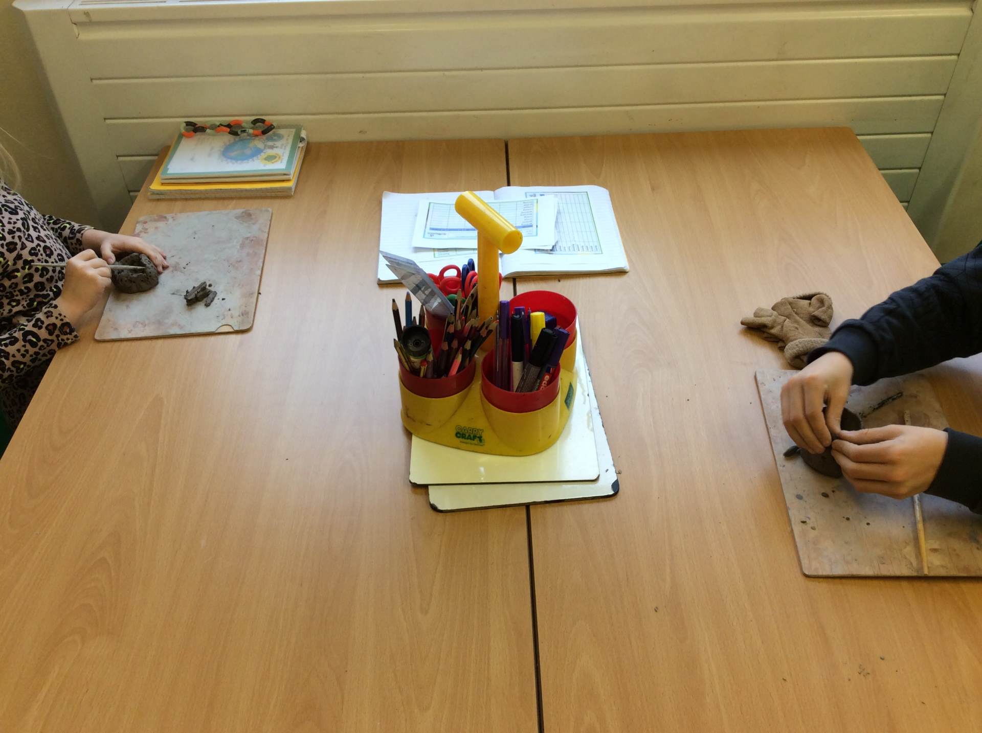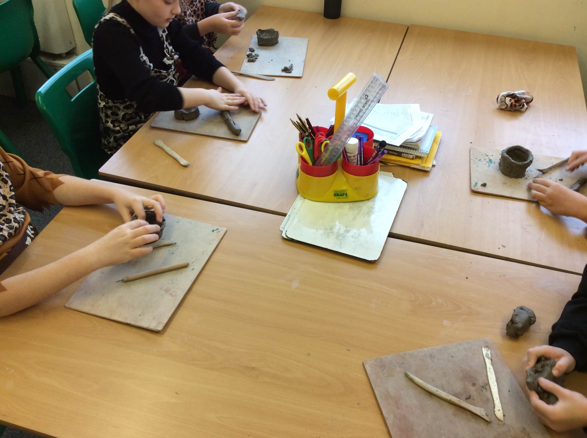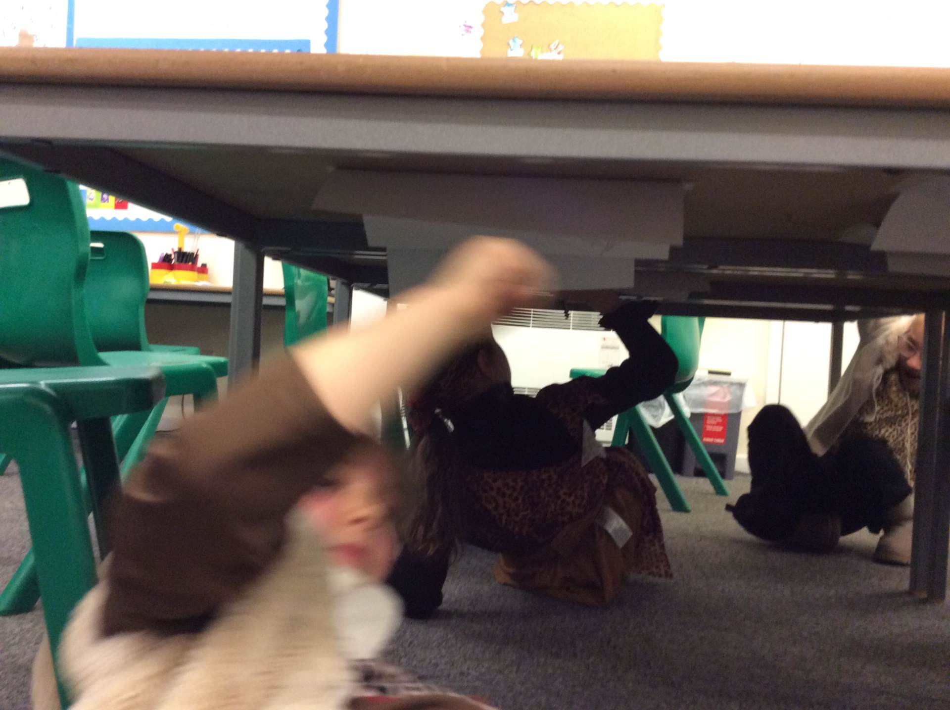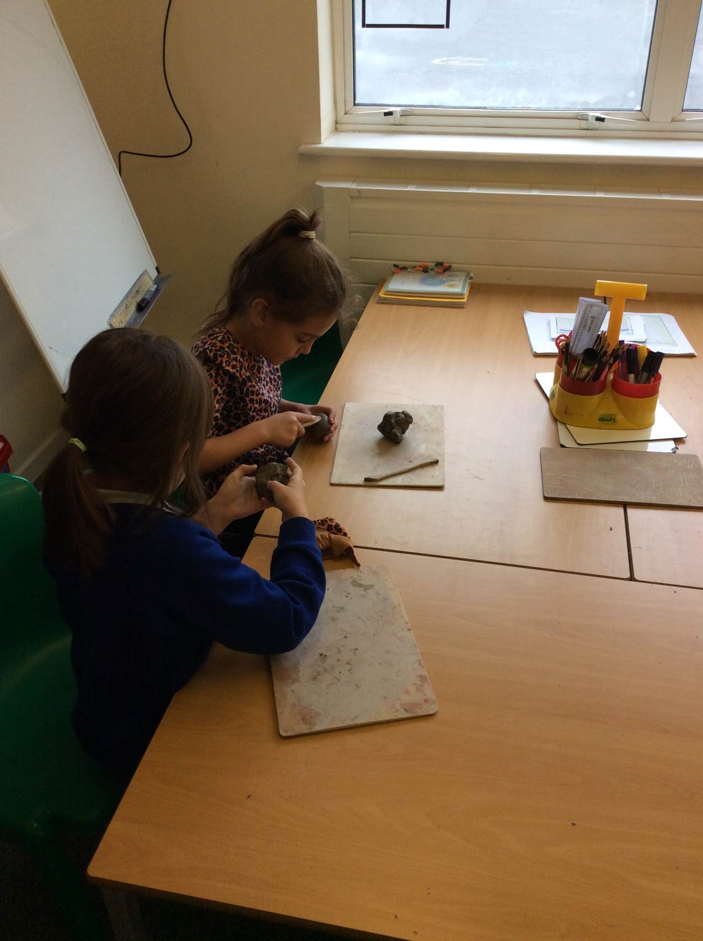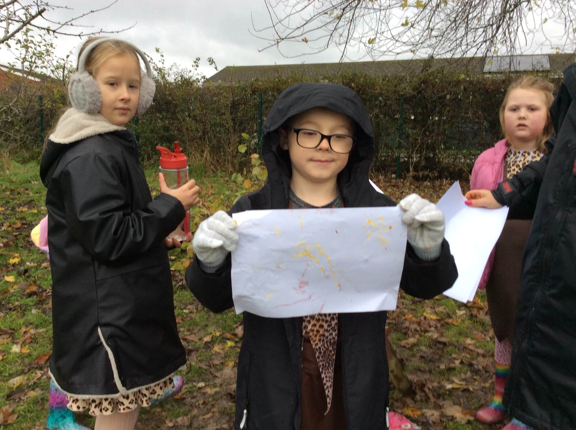 Today we spent the day as Stone Age people dressed in costume and experiencing life like they would have done 3 million years ago. In the morning, we used natural materials to create paintings, made sparks for a fire using flint stones and crafted clay pots. Because it was so cold outside, we had to have hot chocolate and marshmallows to warm us up when we came back inside! During the afternoon, we pretended we were inside a cave by going under the tables and drawing on the 'cave roof', we also made a fruit stew-it tasted delicious. Next week, we will be writing the instructions for how to make fruit stew in our English lessons.