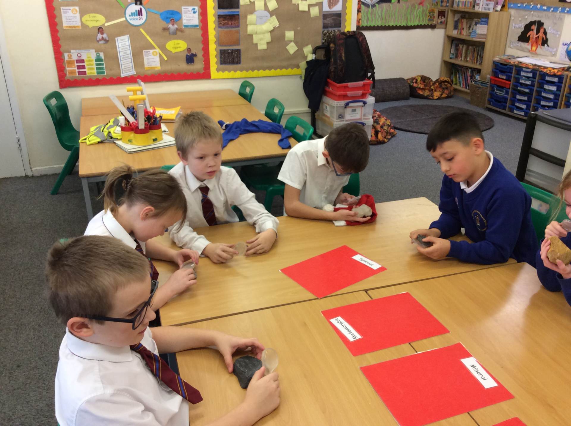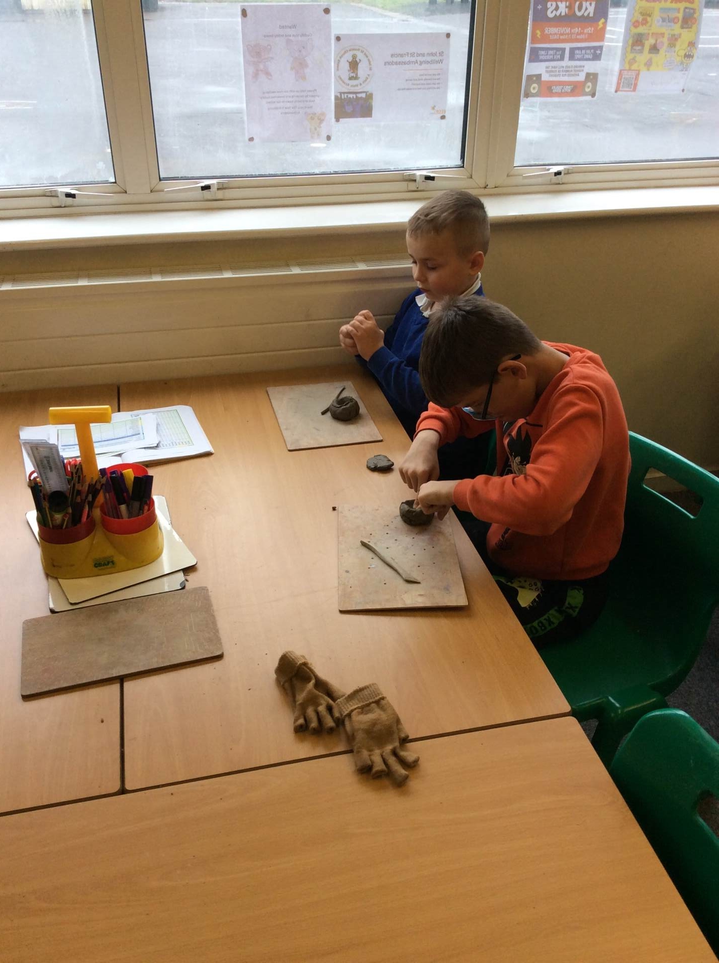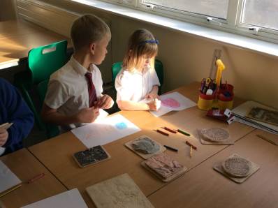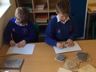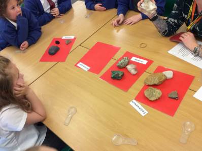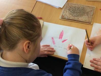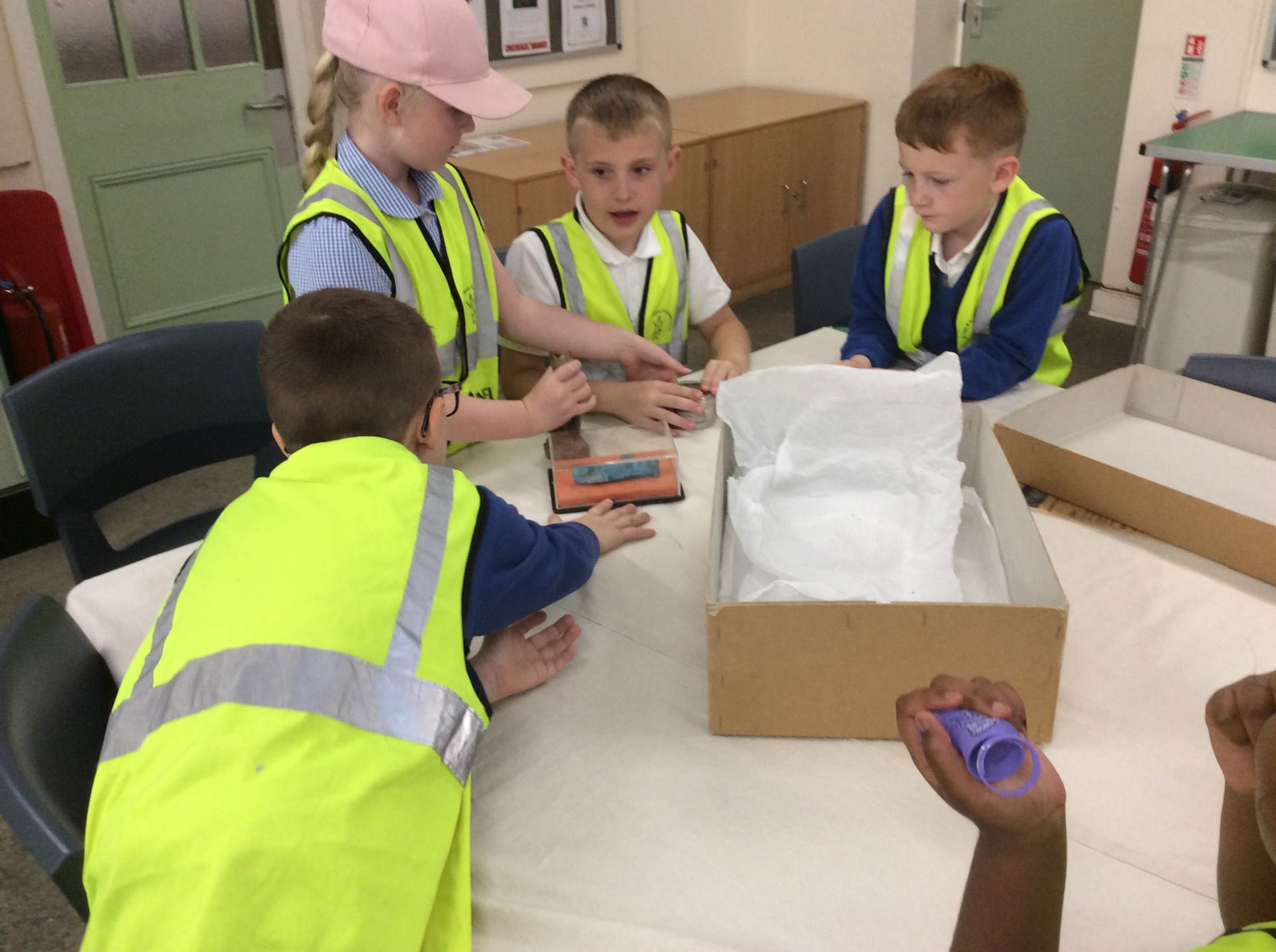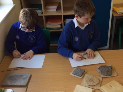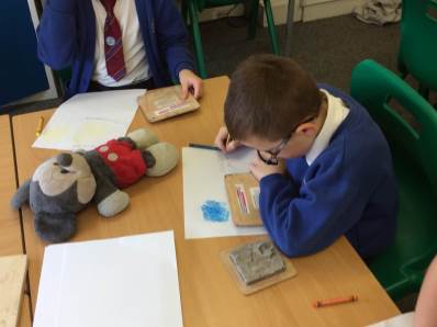 Today, Natasha from Somerset Heritage and Learning came to share her knowledge on rocks and fossils. We started our session by watching a video about how fossils are made and then moved on to three different activities. The first activity was working with Natasha to identify different rocks and using magnifying glasses to see what small particles the rocks were made up of. The second activity was a game of rock bingo, and the third activity was rubbing fossils to make our very own prints. We then had to identify what type of fossil we had been given. There were lots of opportunities to walk around the room and read the information that Natasha had brought out as well. What an exciting morning we had learning more about rocks and fossils.