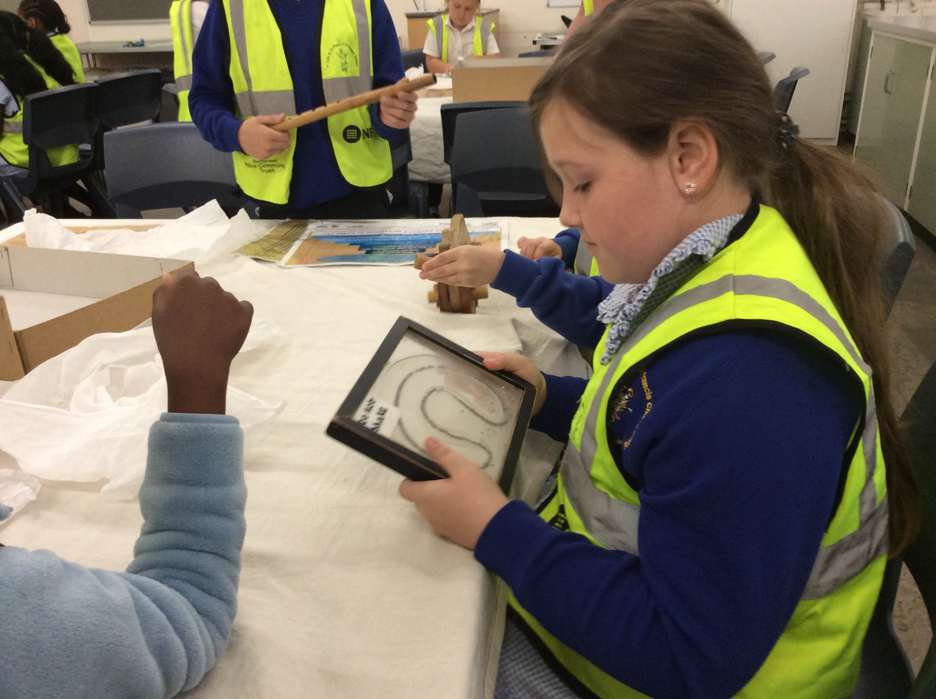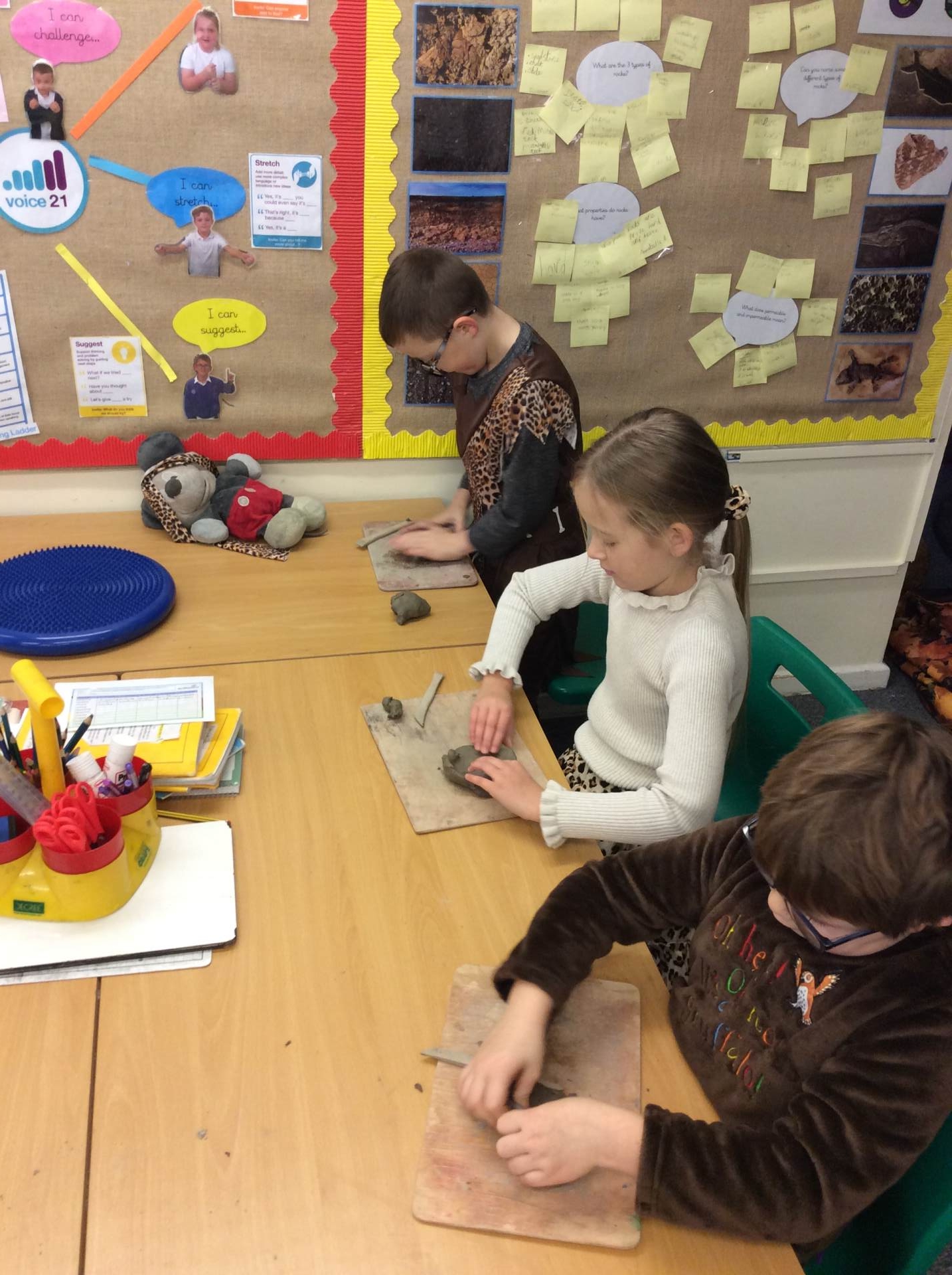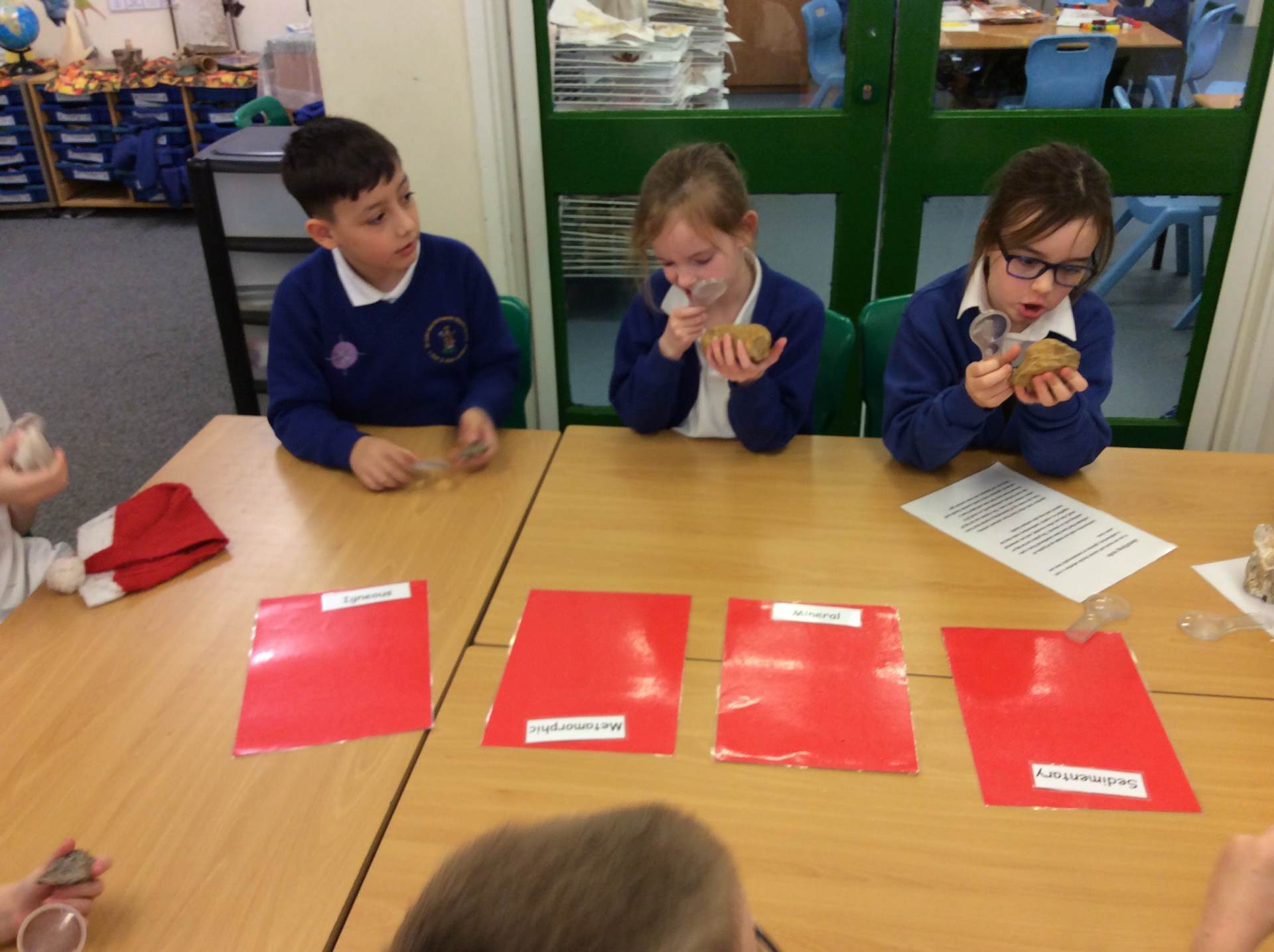 Today, Natasha from Somerset Heritage and Learning came to share her knowledge on rocks and fossils. We started our session by watching a video about how fossils are made and then moved on to three different activities. The first activity was working with Natasha to identify different rocks and using magnifying glasses to see what small particles the rocks were made up of. The second activity was a game of rock bingo, and the third activity was rubbing fossils to make our very own prints. We then had to identify what type of fossil we had been given. There were lots of opportunities to walk around the room and read the information that Natasha had brought out as well. What an exciting morning we had learning more about rocks and fossils.