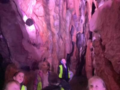 What a fantastic day! We learnt so much about life in Stone Age Times and also about rock formations within the Cheddar Caves. The museum of prehistory taught us all about Cheddar Man, who's remains were found in Gough's Cave and the visit to Coxes Cave helped us to understand the story of water and how the Cheddar Caves and Gorge were formed. We saw stalactites and stalagmites and even columns formed where the calcite met in the middle. Lots of pupils thought the cave formations were beautiful and they could see all sorts of strange formations within Gough's cave as pointed out by our guide Sophie, including ice-cream scoops, melted cheese and a dragon's head. There was even a cinema where we watched a film called 'Beyond the View' all about life within the Gorge.