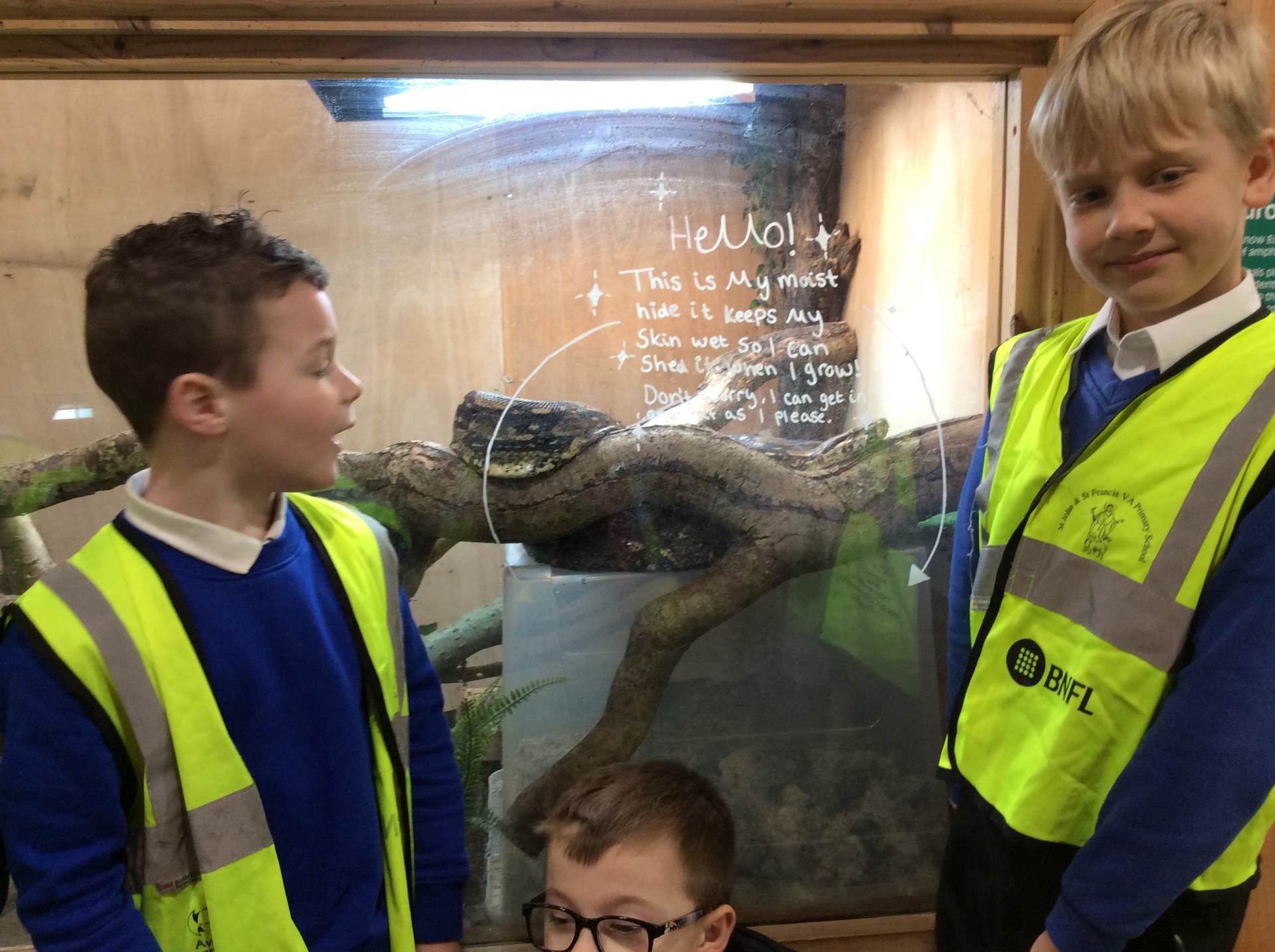 We all enjoyed a fantastic day at Puxton Park near Weston, finding out about animals diets, habitats and which animal group they belonged to. We were able to make enrichment boxes for the marmoset monkeys and then watched them hunt through the boxes to find vegetables and mealworms. We had an animal show where we met a couple of reptiles, a furry mammal and a creature with 250 legs. After lunch, we enjoyed a tractor ride into the cow barn to learn more about the newly born calves, a dinosaur ride and a play in the outdoor play park just for fun!
