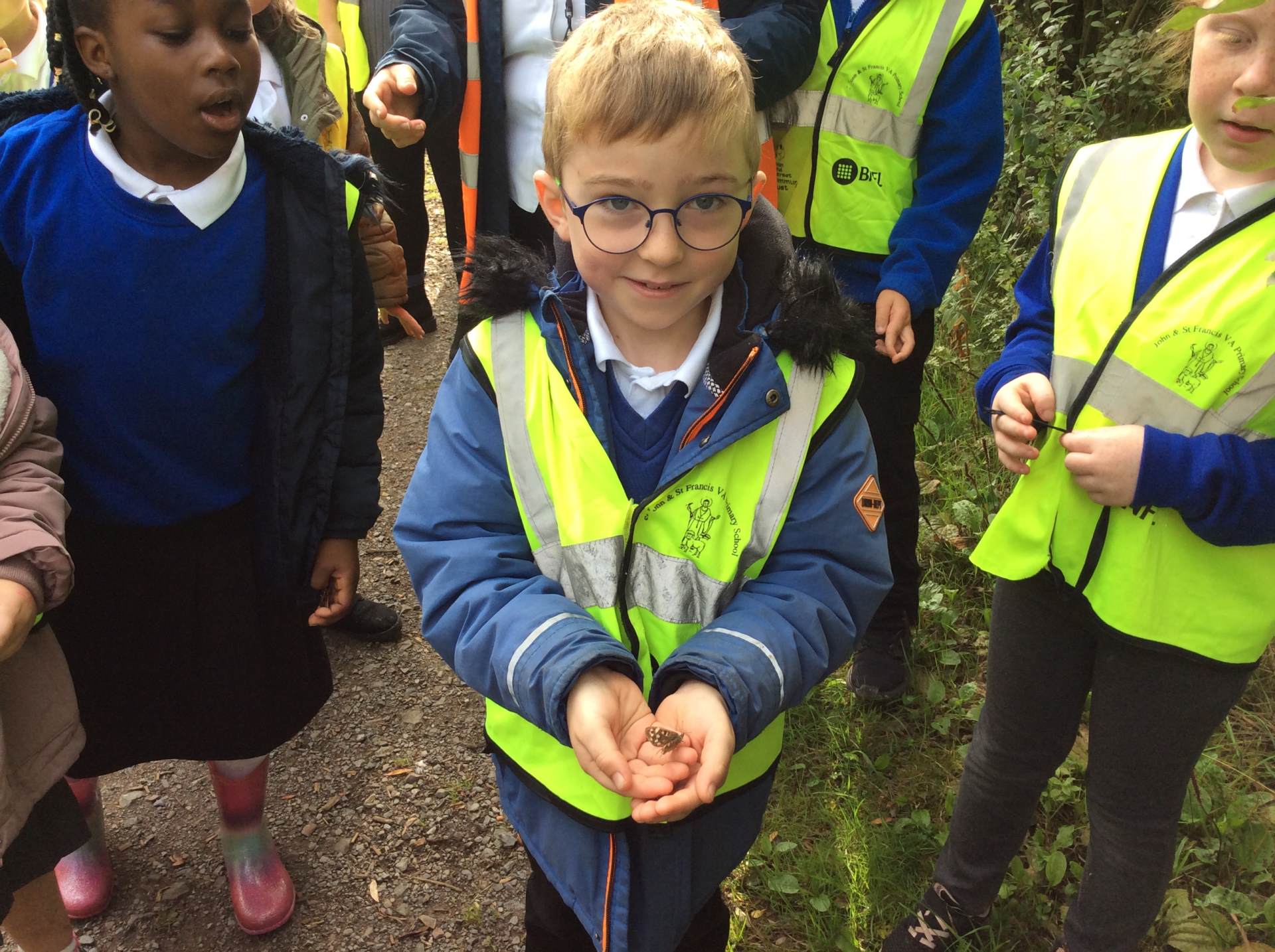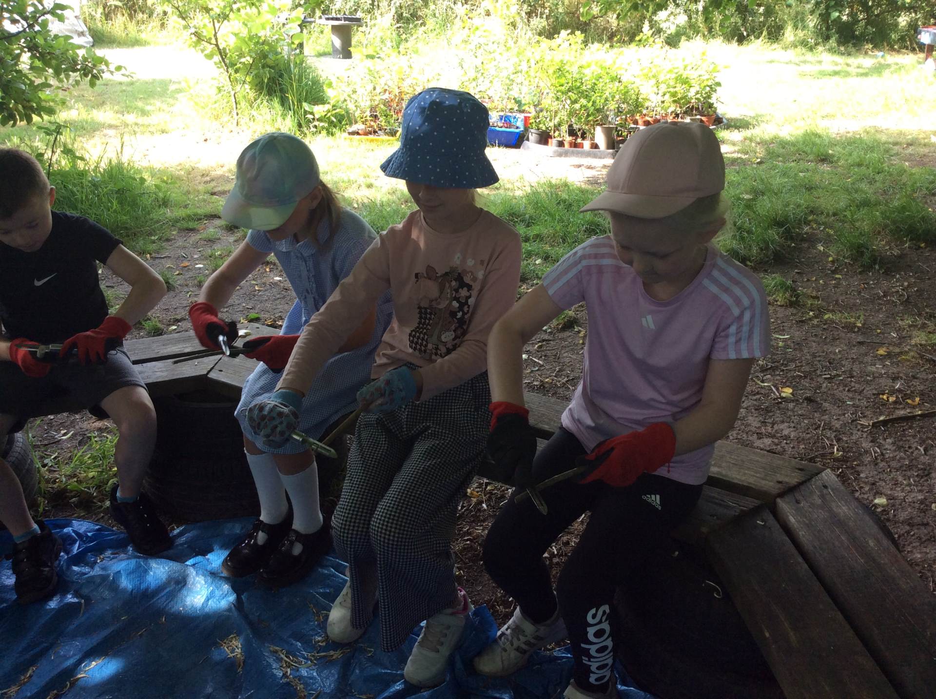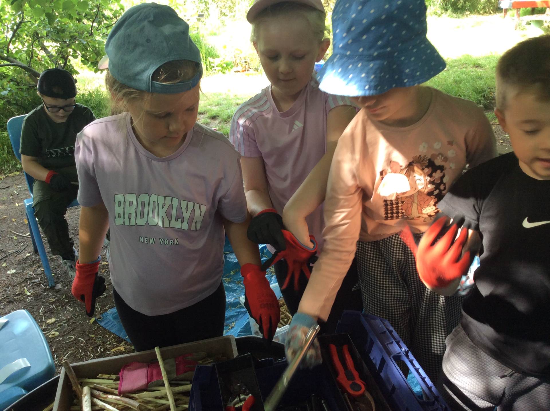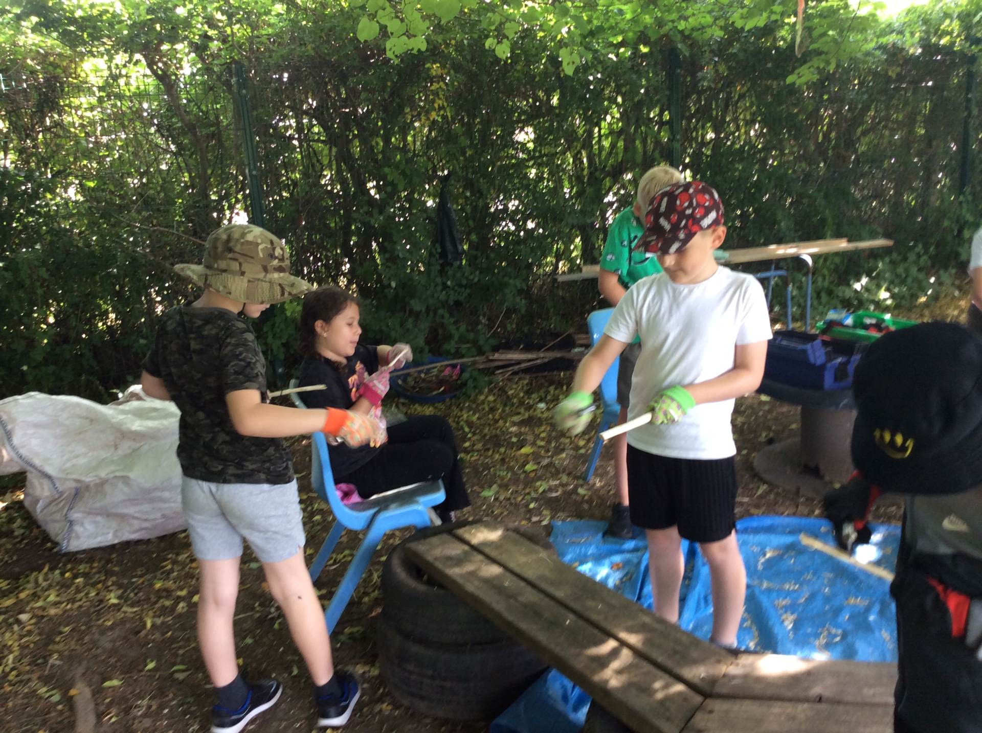 Everyone had a great morning in the sun today with Mrs Nurcombe our Forest School Leader. We spent our time whitling sticks to make wands, creating shelters for minibeasts and designing Mandela art patterns in natural objects. We then went into the sensory garden and did some pond dipping where we discovered tadpoles, water beetles and water snails.