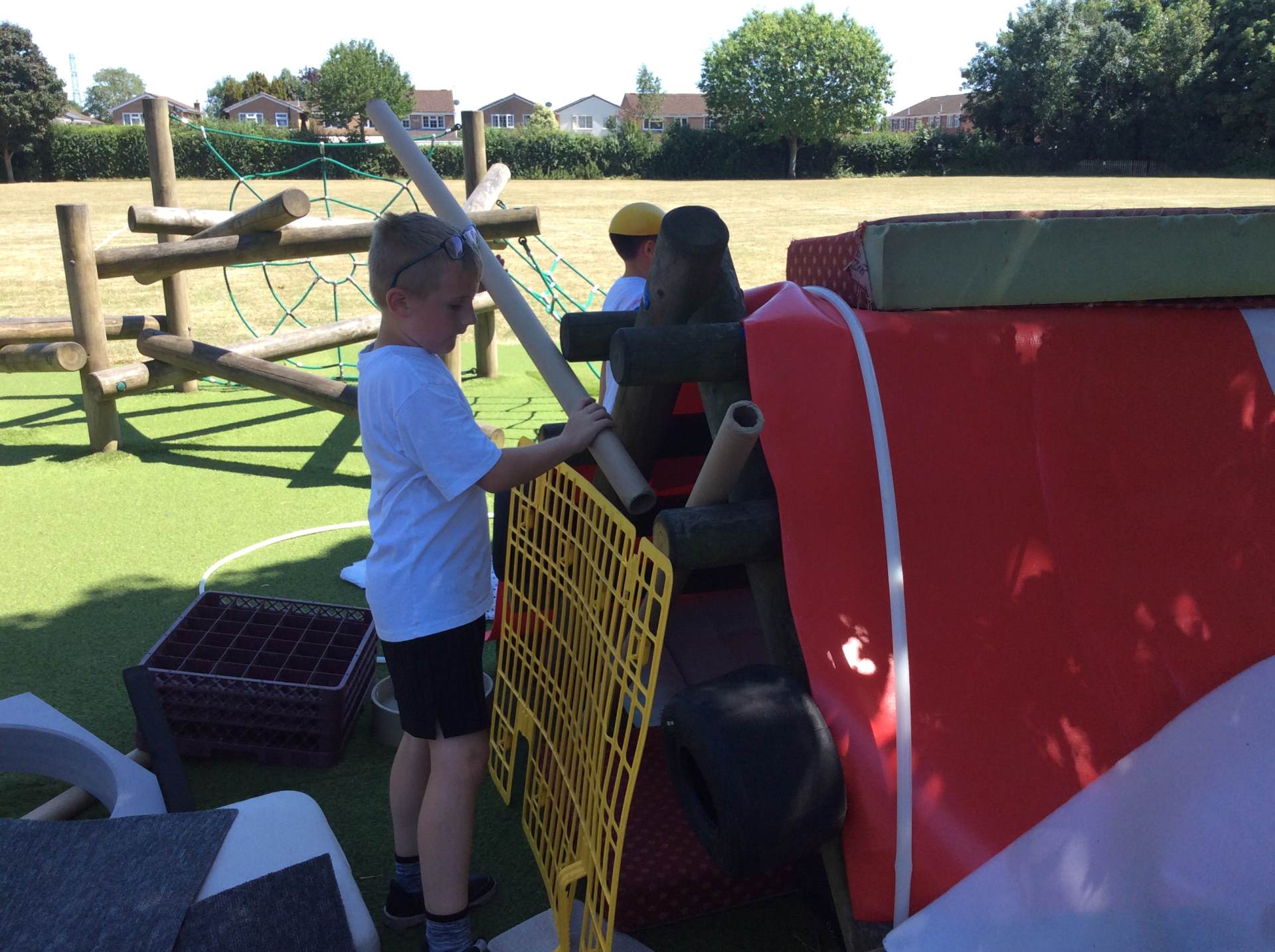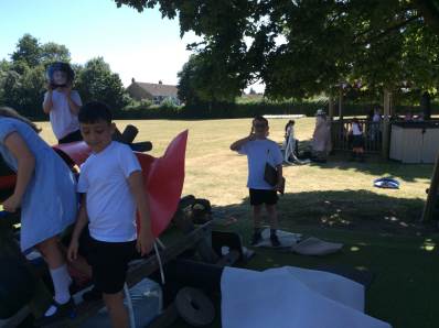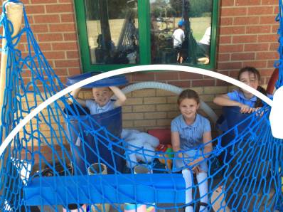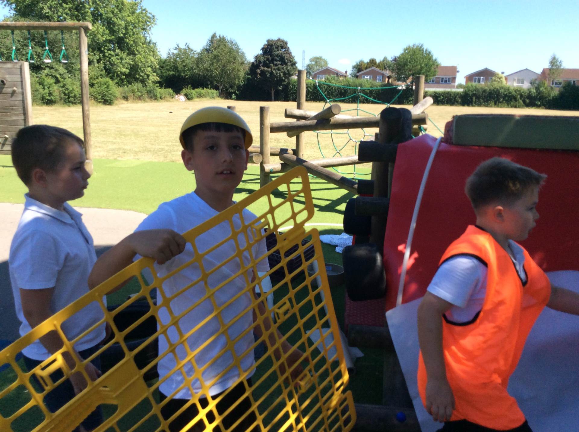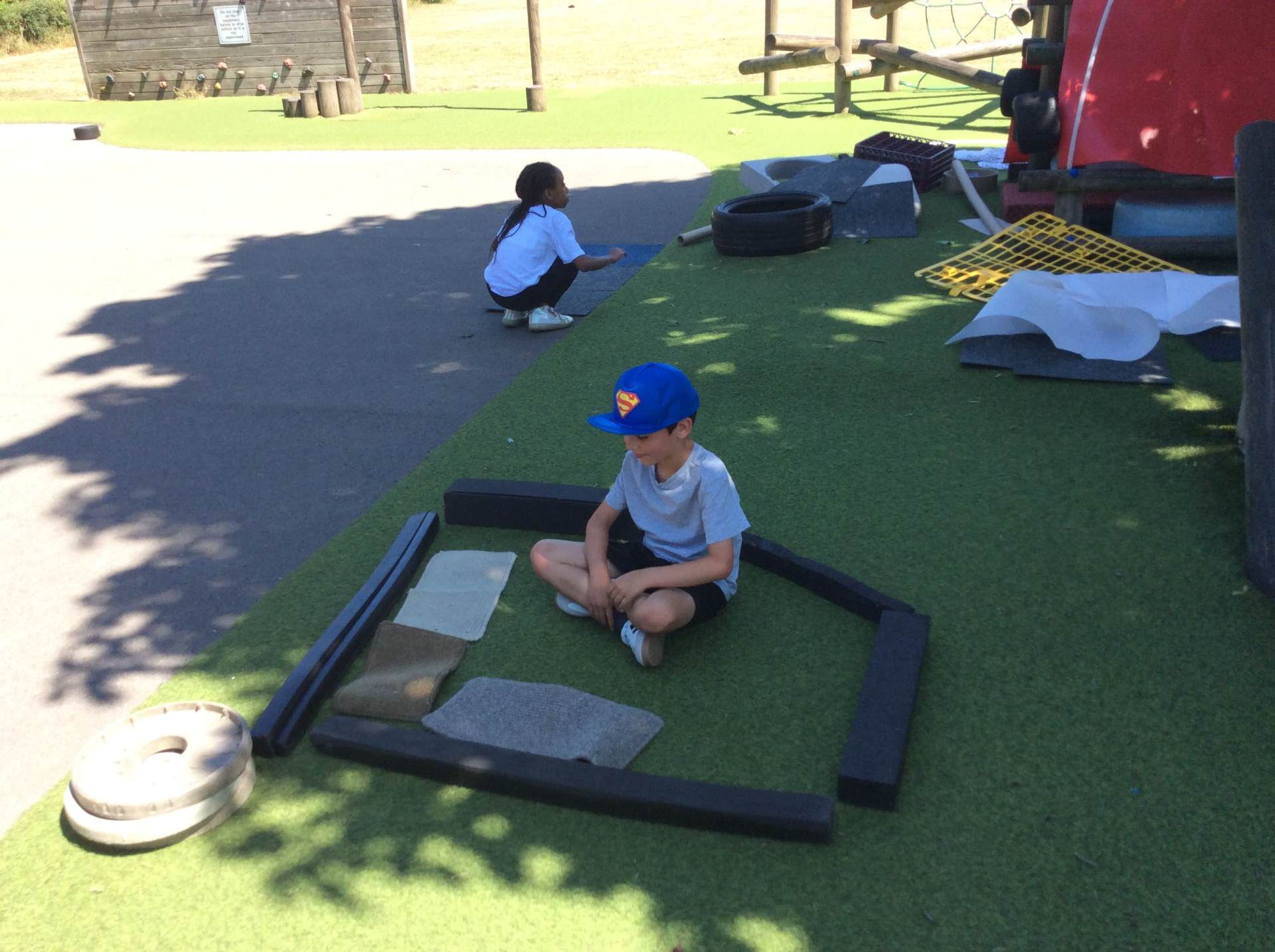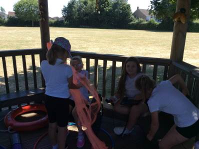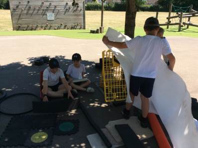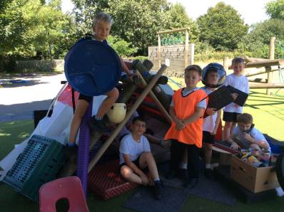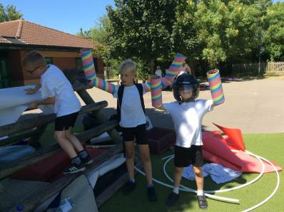 As a year group we went out to enjoy some 'play-based' learning using the play-pod equipment. The children really enjoyed working collaboratively and using their imagination to create work spaces, bases and dens. It coincided perfectly with the hottest day of the year, therefore we stayed in the shade. There was lots of creativity, bargaining and sharing and everyone developed their personal and social skills.