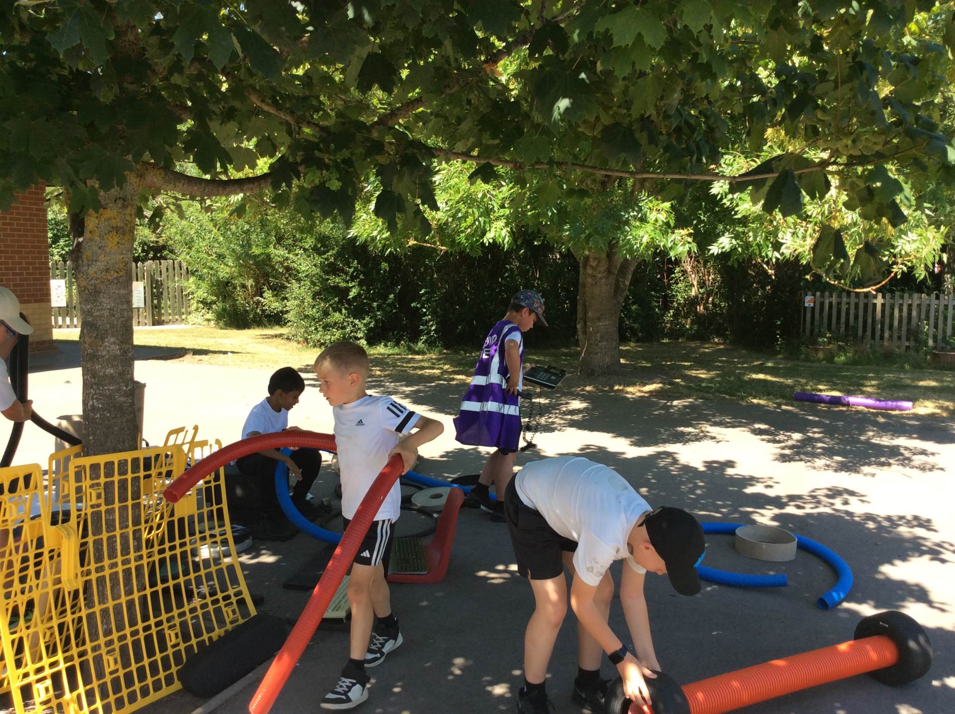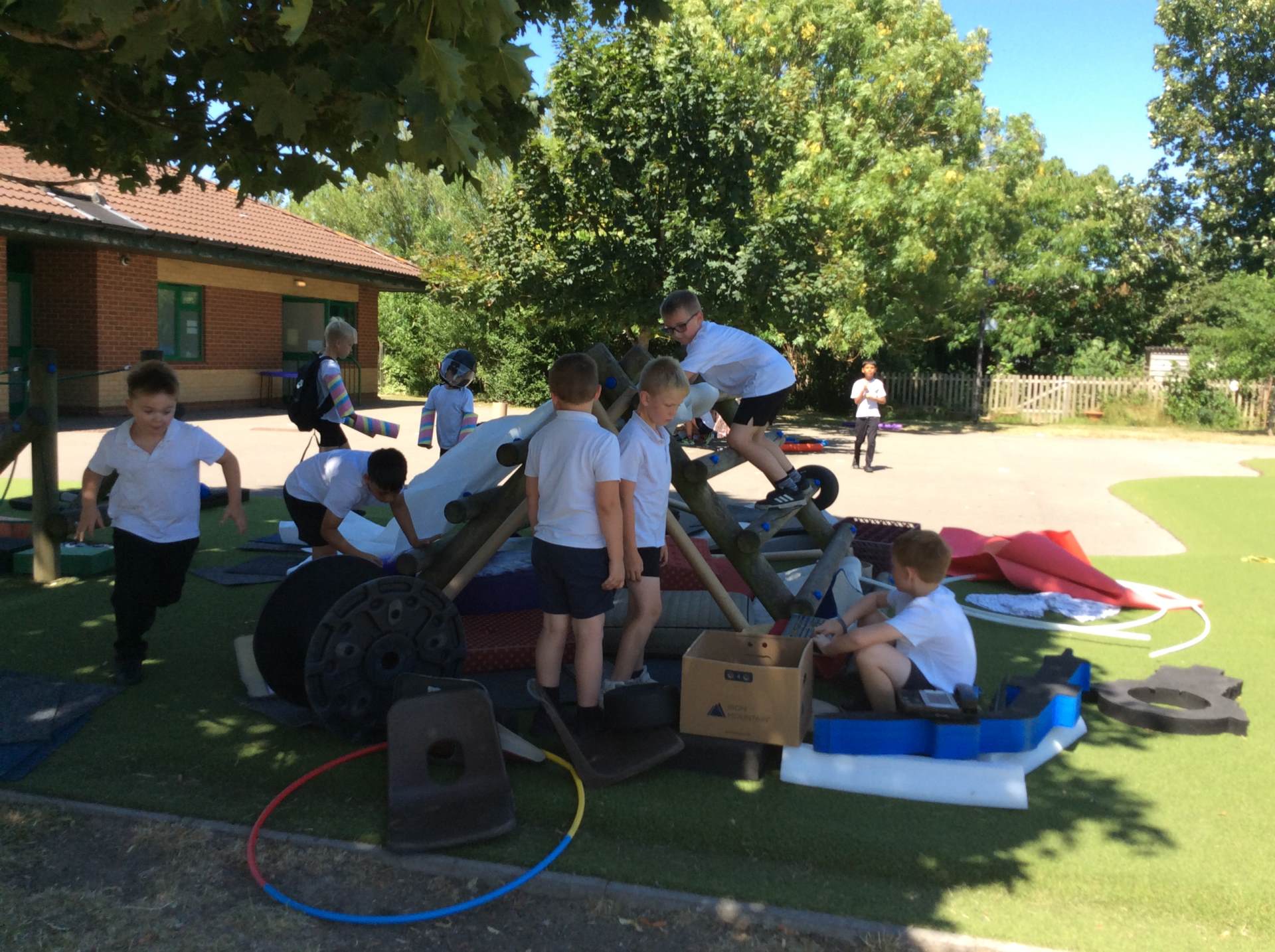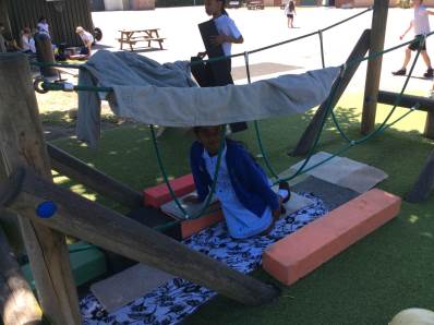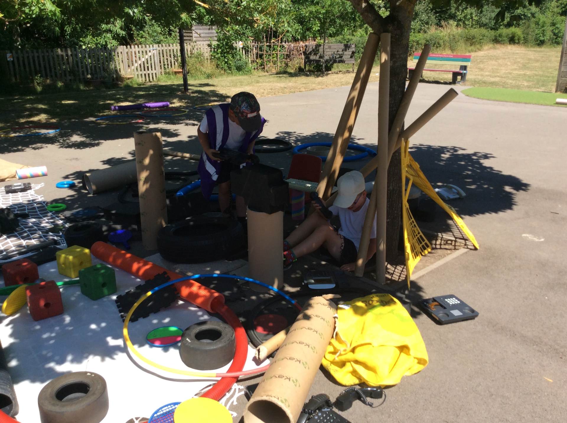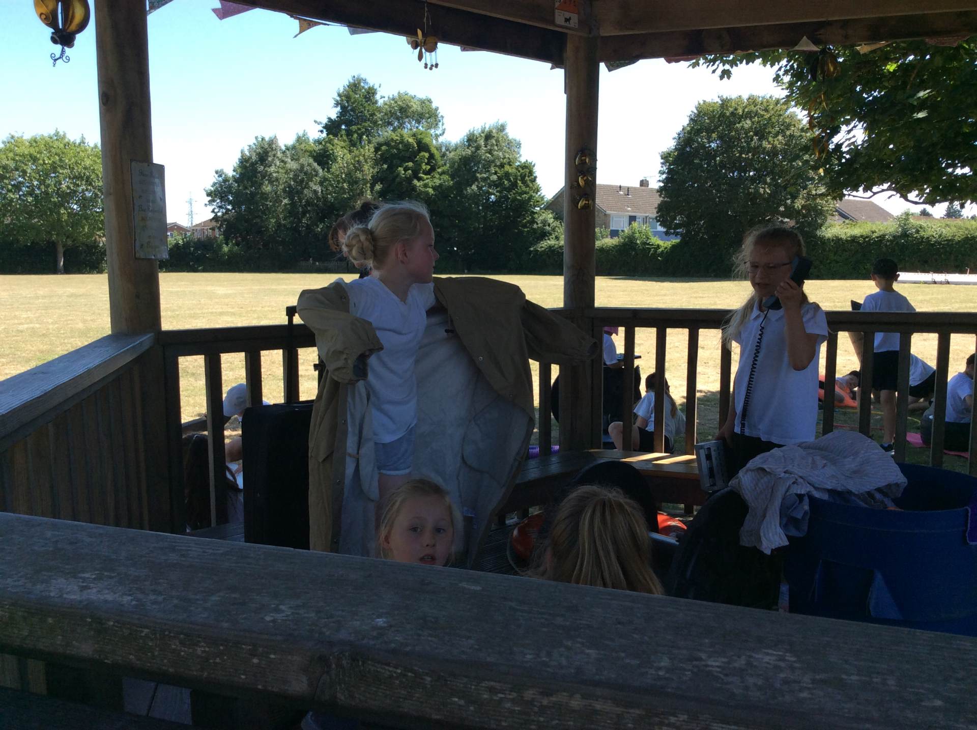 As a year group we went out to enjoy some 'play-based' learning using the play-pod equipment. The children really enjoyed working collaboratively and using their imagination to create work spaces, bases and dens. It coincided perfectly with the hottest day of the year, therefore we stayed in the shade. There was lots of creativity, bargaining and sharing and everyone developed their personal and social skills.