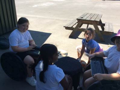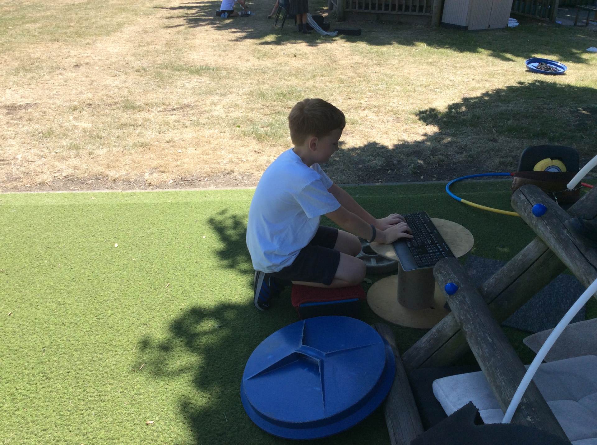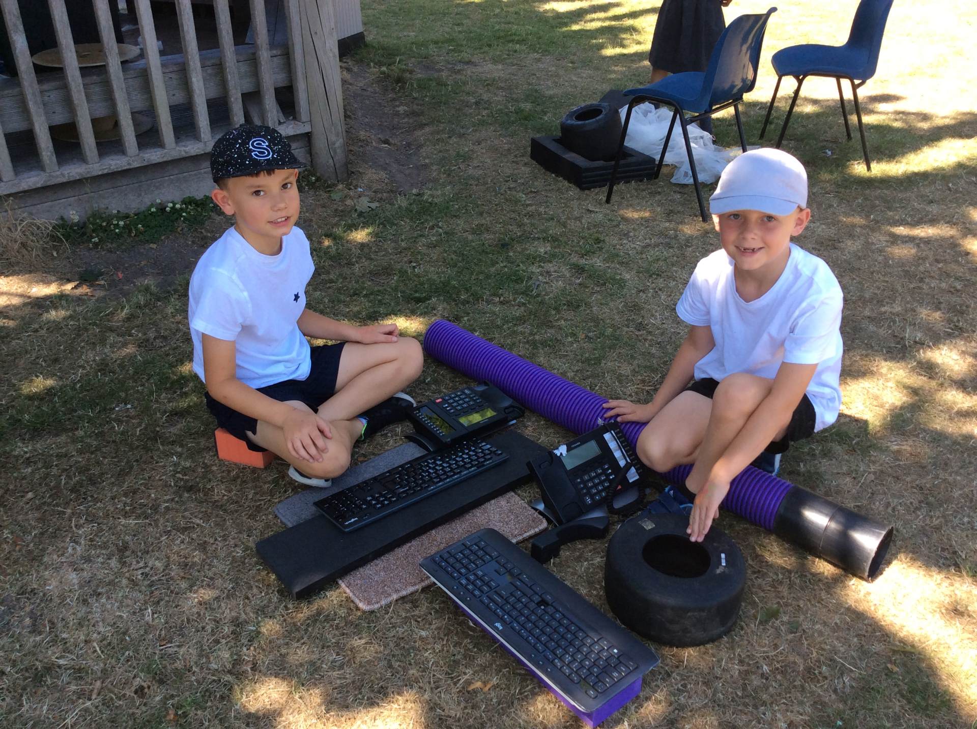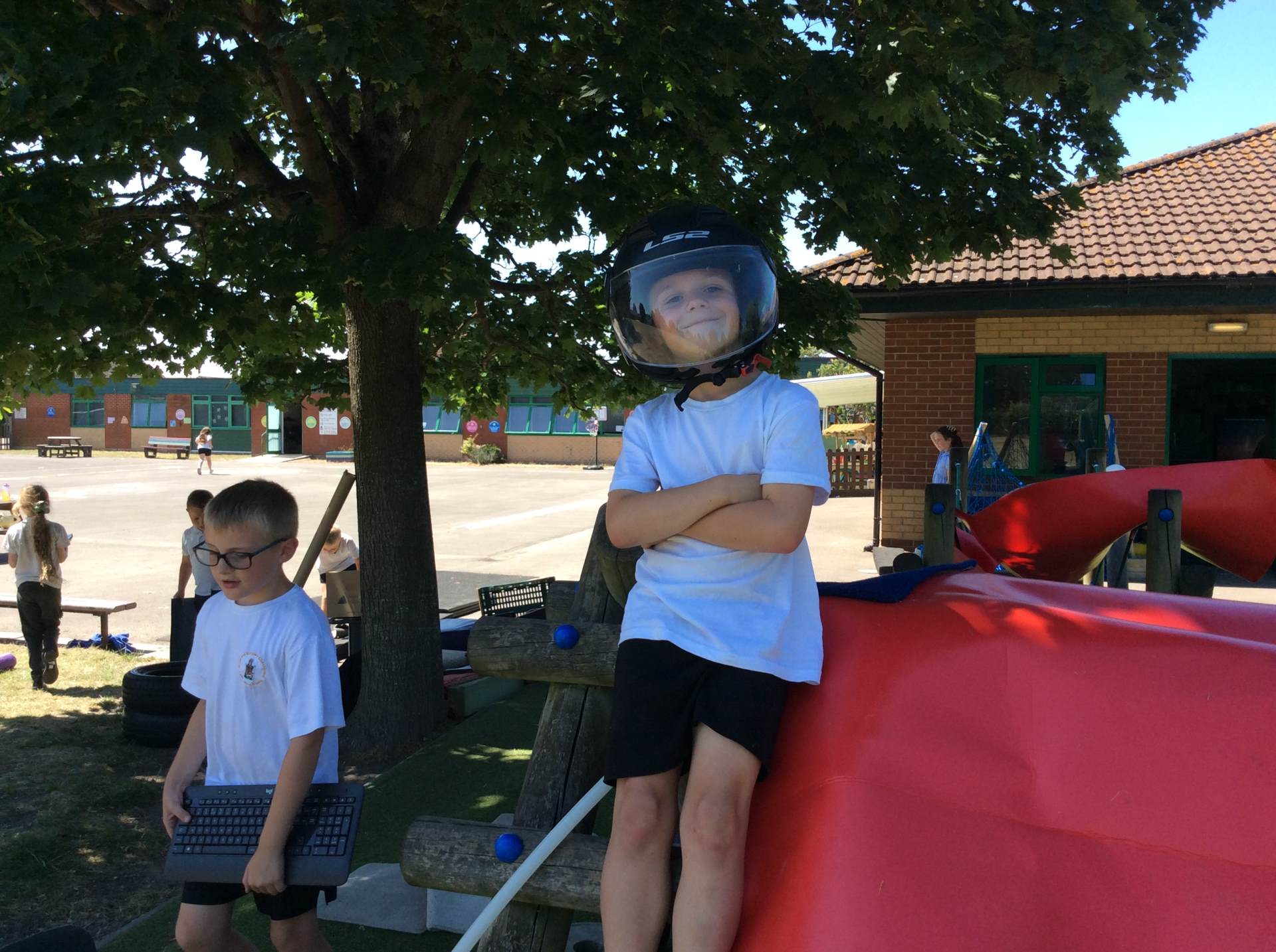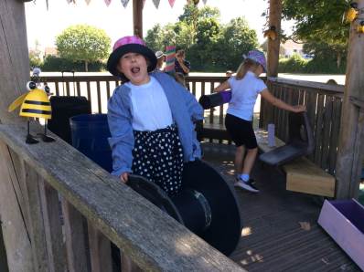 As a year group we went out to enjoy some 'play-based' learning using the play-pod equipment. The children really enjoyed working collaboratively and using their imagination to create work spaces, bases and dens. It coincided perfectly with the hottest day of the year, therefore we stayed in the shade. There was lots of creativity, bargaining and sharing and everyone developed their personal and social skills.