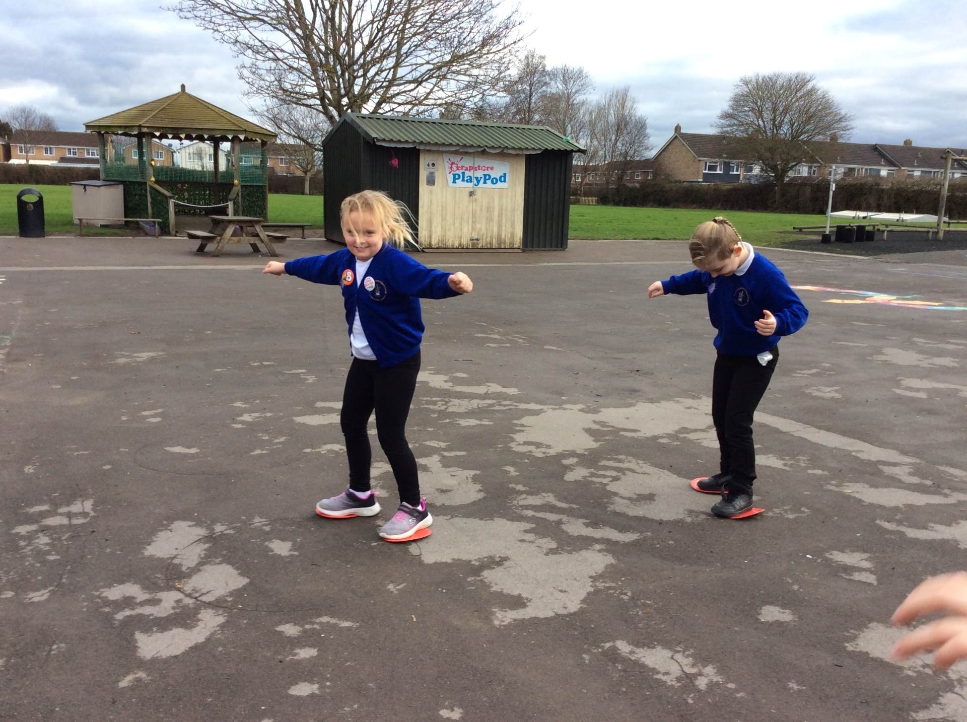 This week during our PE lesson, we shared some facts about the Olympic Games as the Winter Games are starting at the end of the week. Because we didn't have any ice or snow, we improvised using paper plates as ice skates and skated around the playground. Luckily no one was injured and we felt it was safer than using real ice skates. We are looking forward to watching some of the Winter Olympics when they start.