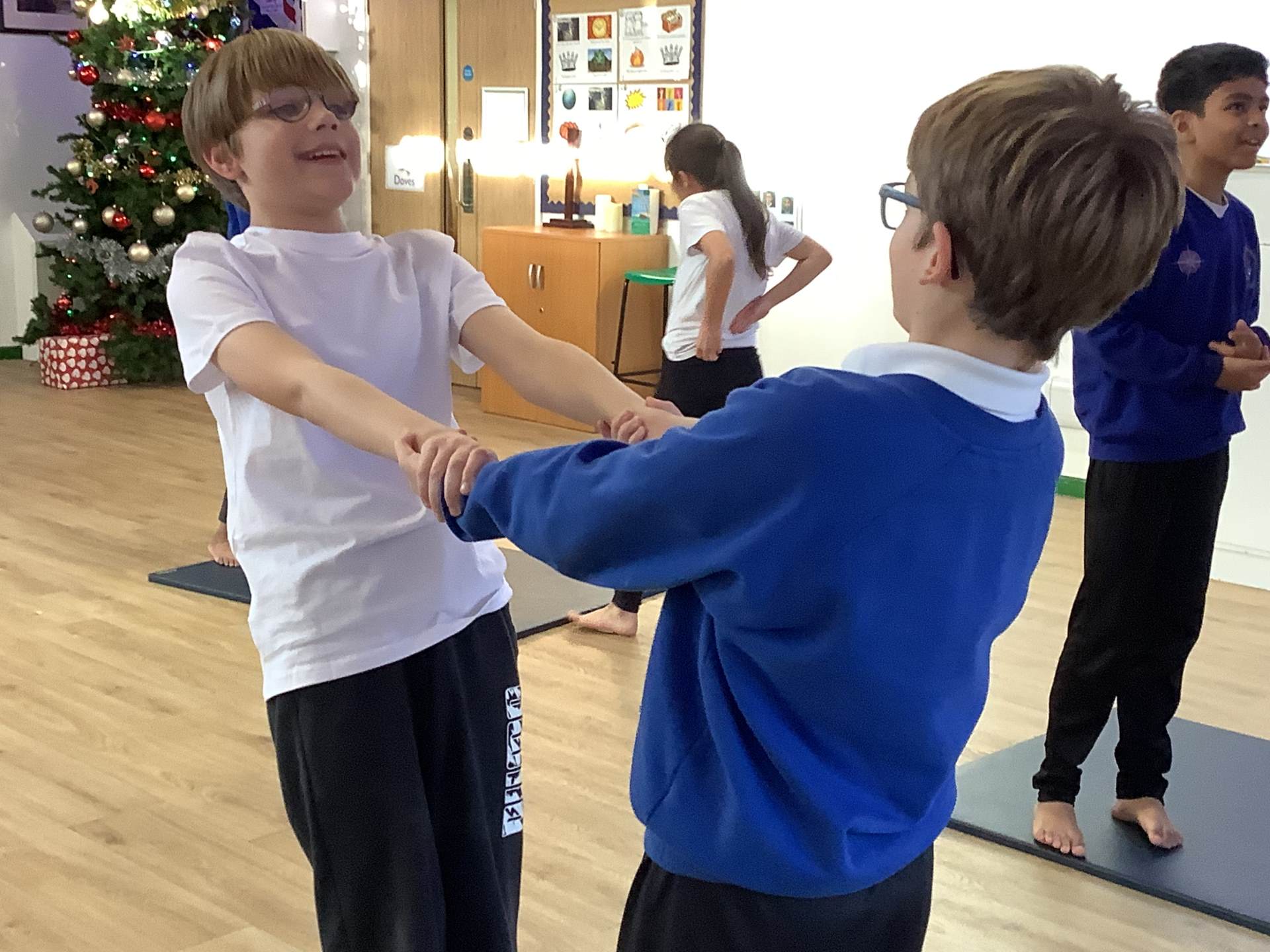 Activity three: 'Run, run, run' - children worked in pairs to create a sequence using some low equipment. In their sequence they needed to include: a balance, flight, travel, a shape and a rotation.
