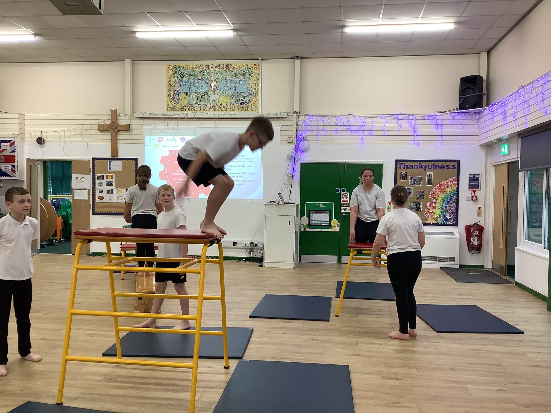 Year 6 finished their REAL PE gymnastics unit yesterday with a brilliant final lesson. The children took part in three different activities after a skipping warm up: