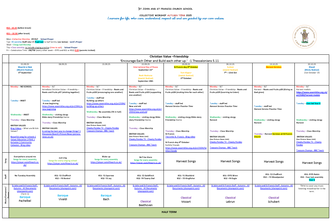For details of our school's worship themes, please visit: St John and St Francis - Religious Education
