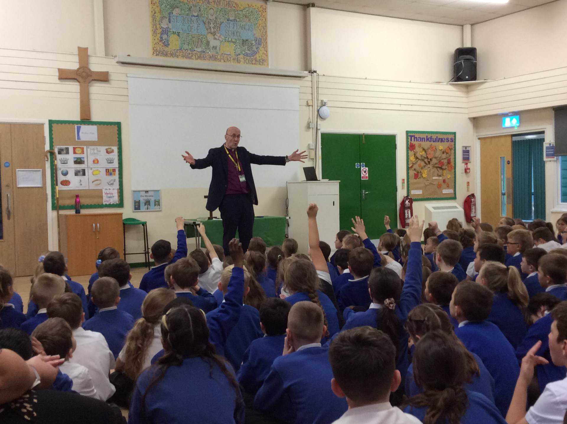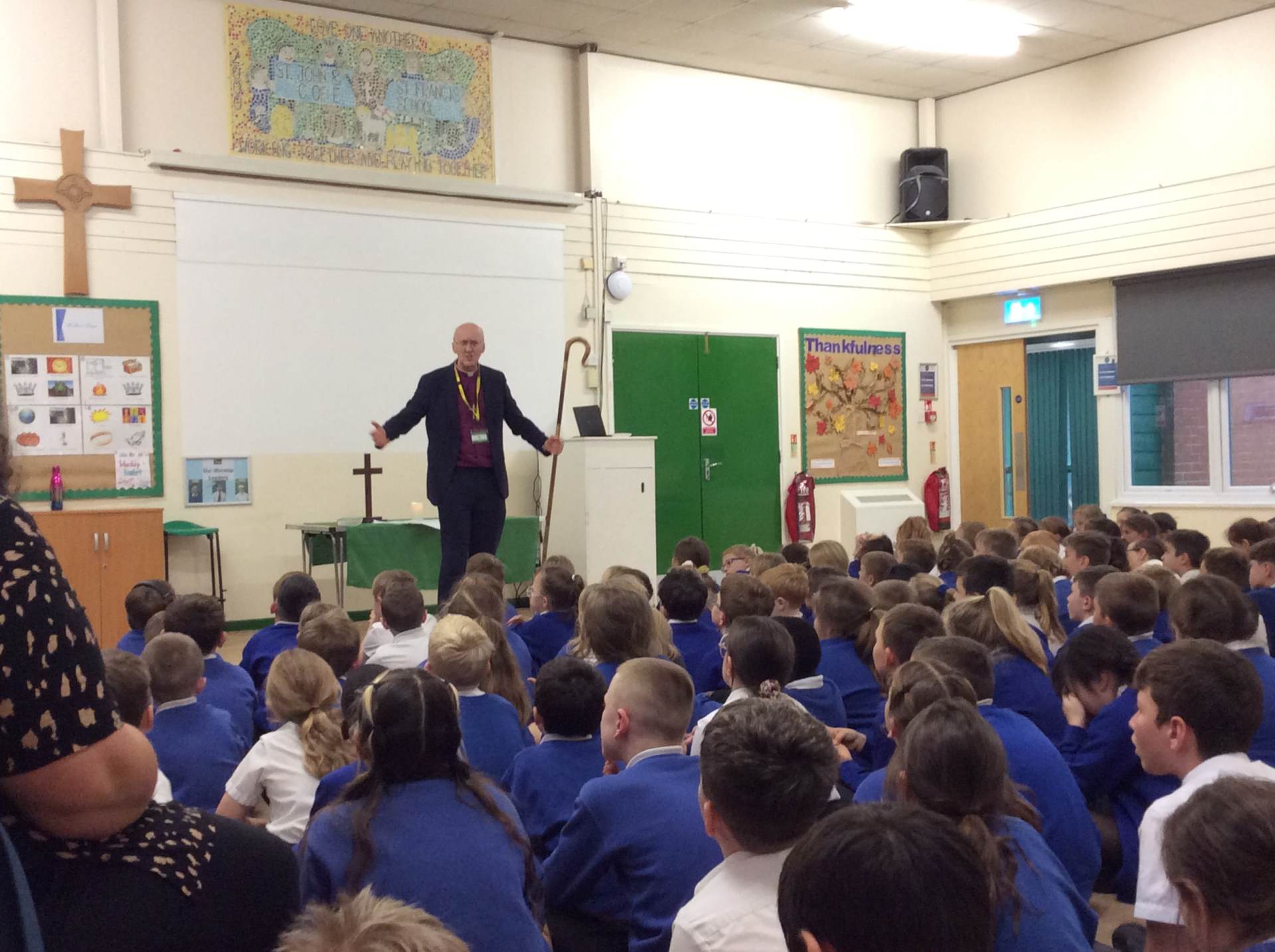 We were previously delighted to welcome Bishop Michael to our school. He toured the school and then in the afternoon led a collective worship for KS2. He spoke to the children about one of our Christian values - Compassion and Kindness, and he was joined by some very enthusiastic helpers. After, the children had the opportunity to ask an array of questions about what it is like to be a bishop.