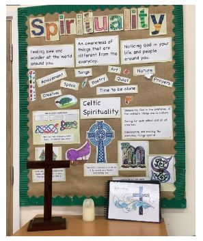 Our Worship Leaders working in their after-school club with Reverand Catherine regarding 'Spirituality' and creasted the following display for the hall: