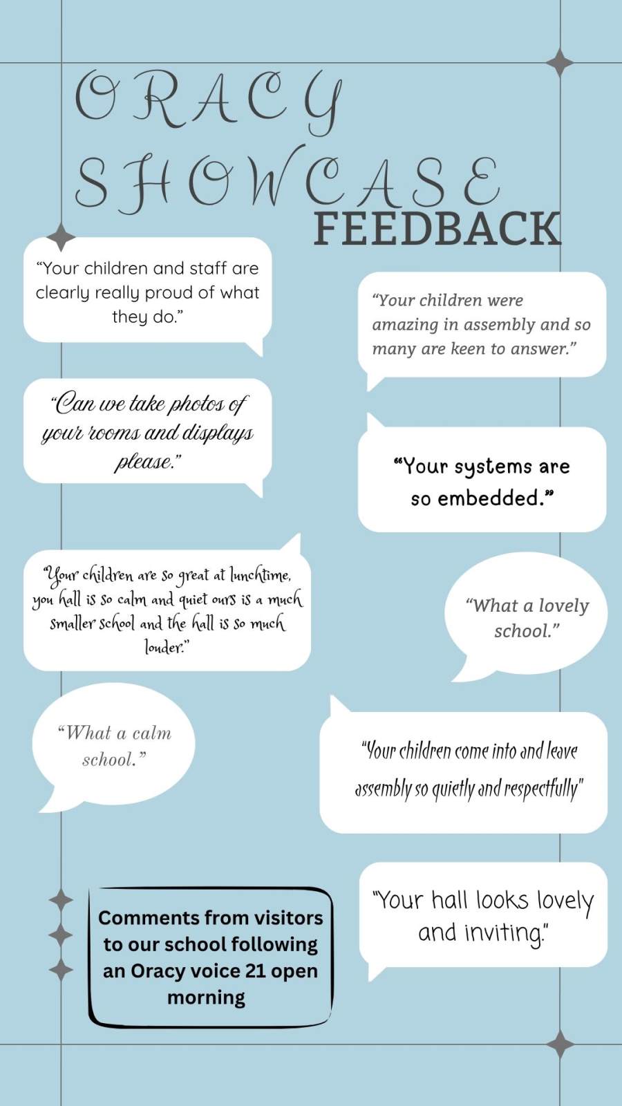 Comments from visitors to our school following an Oracy Voice 21 open morning, June 2025