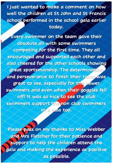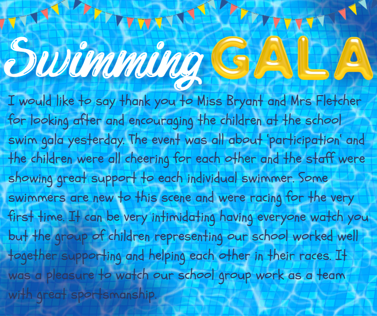 Comment from a parent following Y5 & Y6 swimming gala, May 2025
