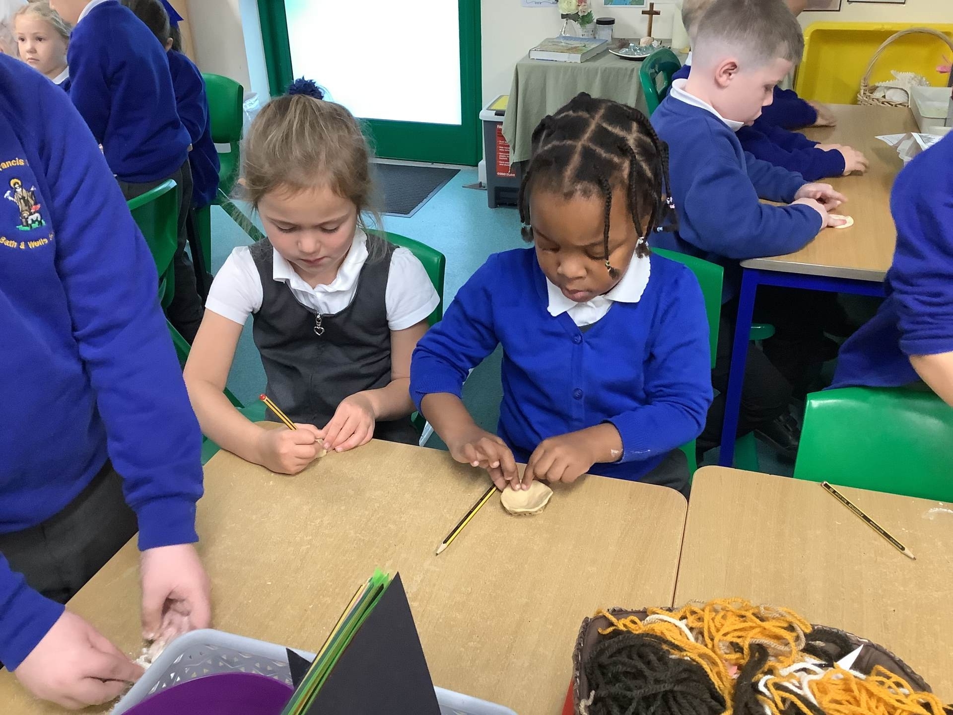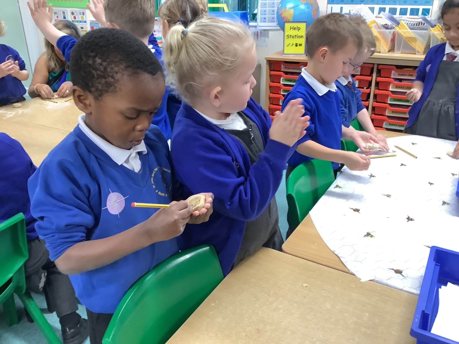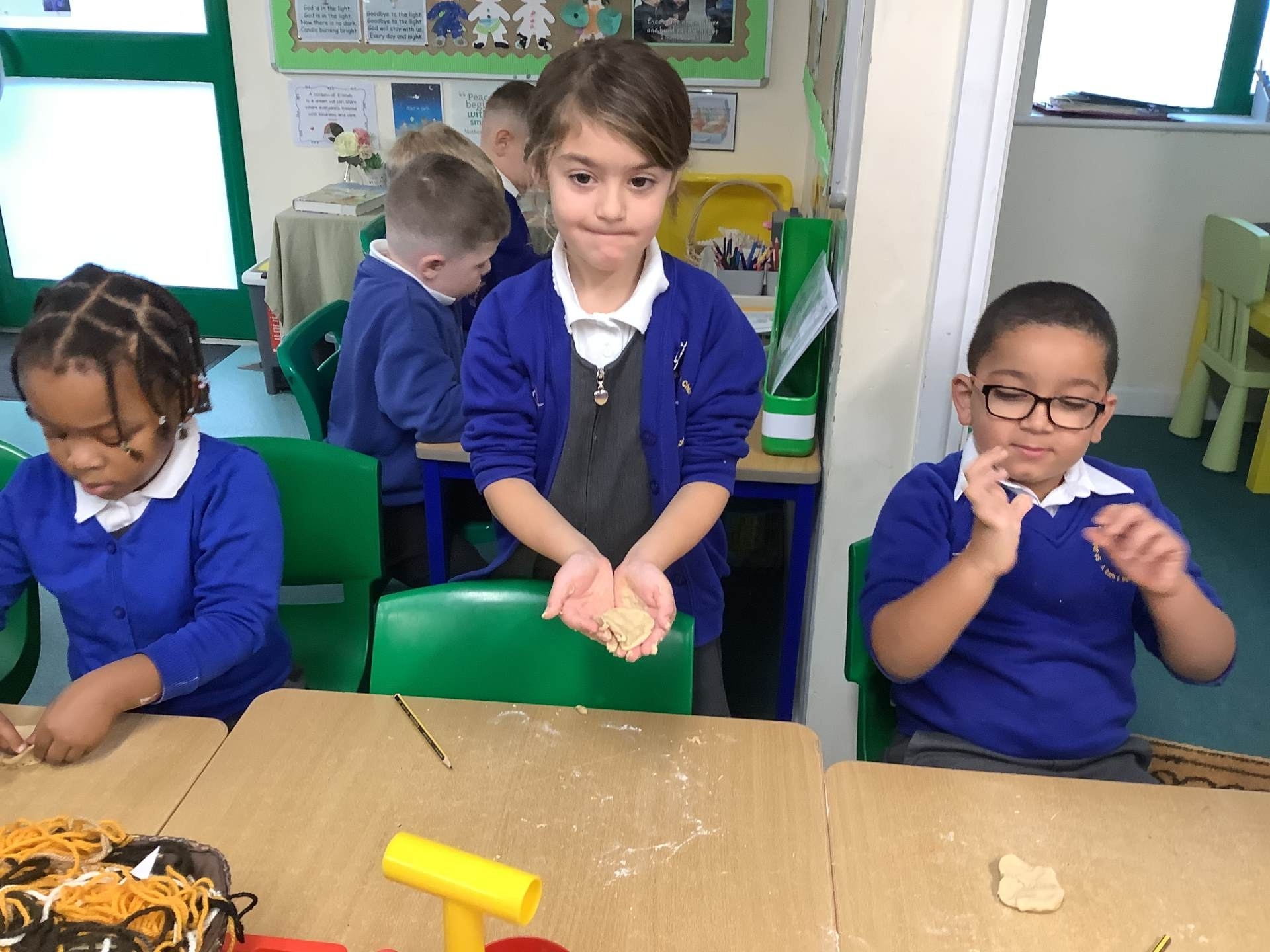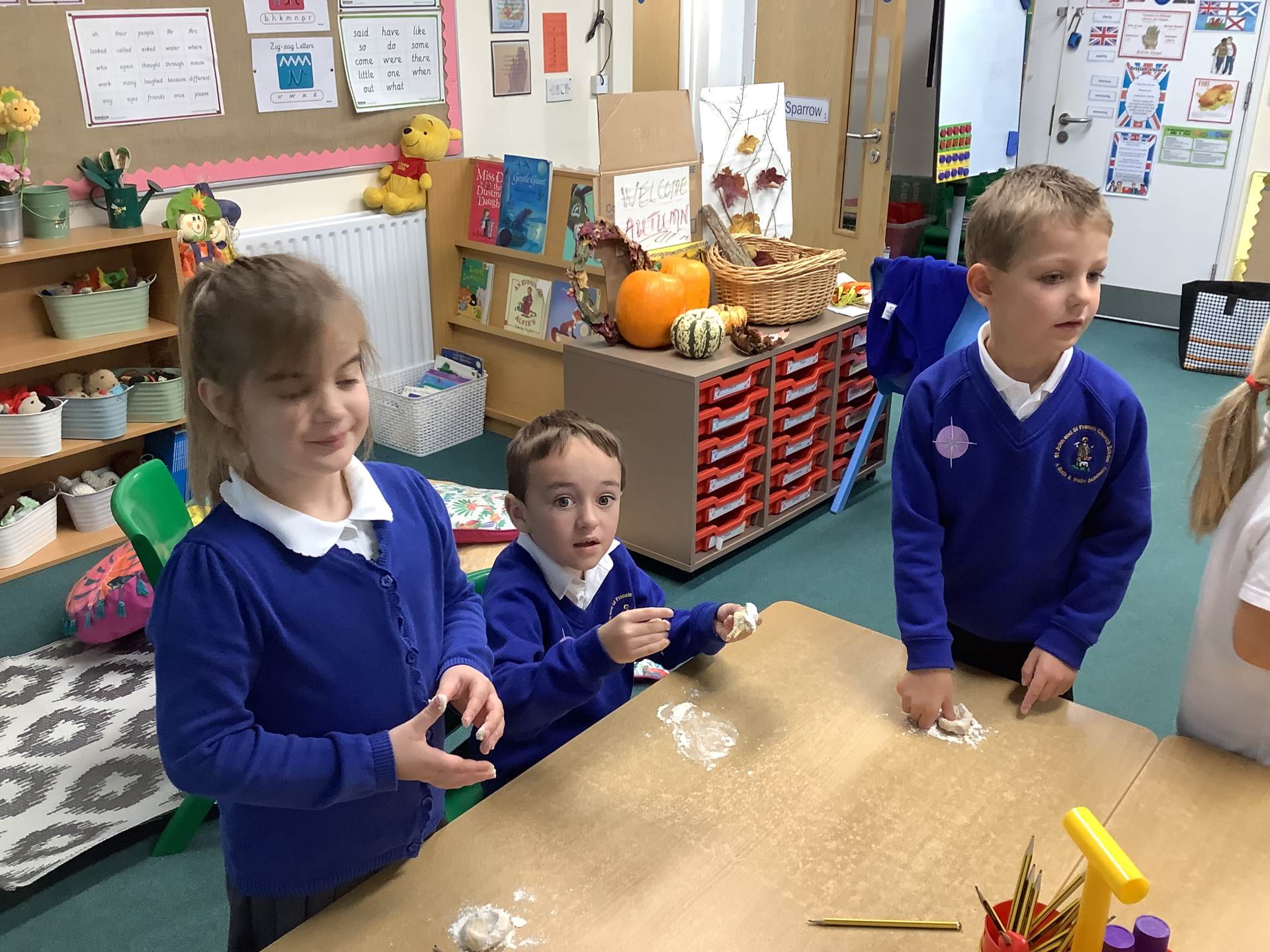 We learnt lots from her fantastic visit. We discovered that it is celebrated a little bit like Christmas where they have a lovely family meal, dress in their best clothes ( Mrs Malhi's dress looked very different to the clothes that we wear), they share sweets and gifts, they decorate their homes and even have fireworks. We were very lucky as we got to make our own Diva lamps to take home. We then created some of our own pictures and patterns using some Rangoli powder and Mrs Edwards and Mrs Leach even had a Mendi pattern drawn on their hands. Mrs Malhi even gave us some sweet treats and the staff some freshly backed spring rolls and samosas which tasted delicious.