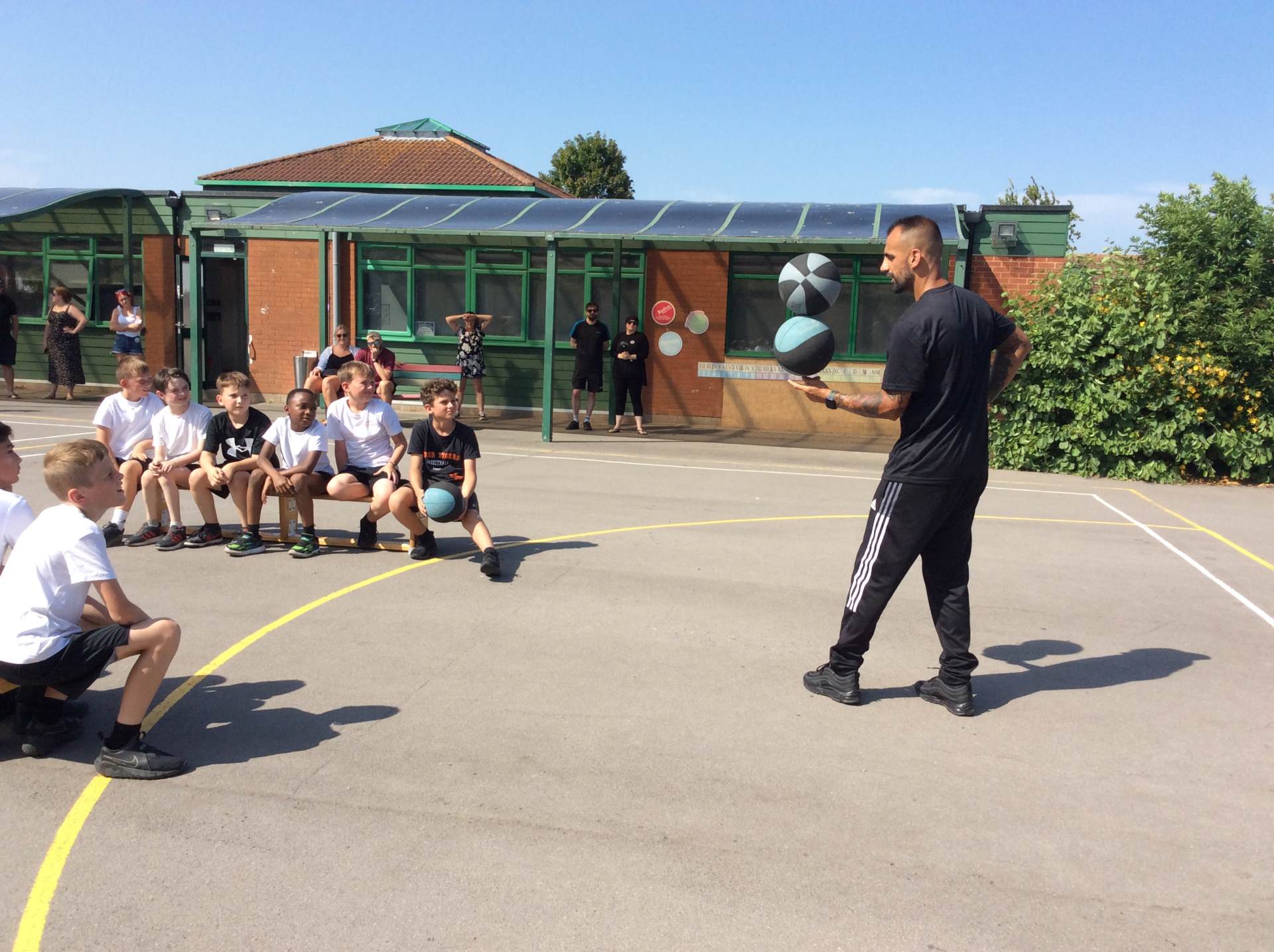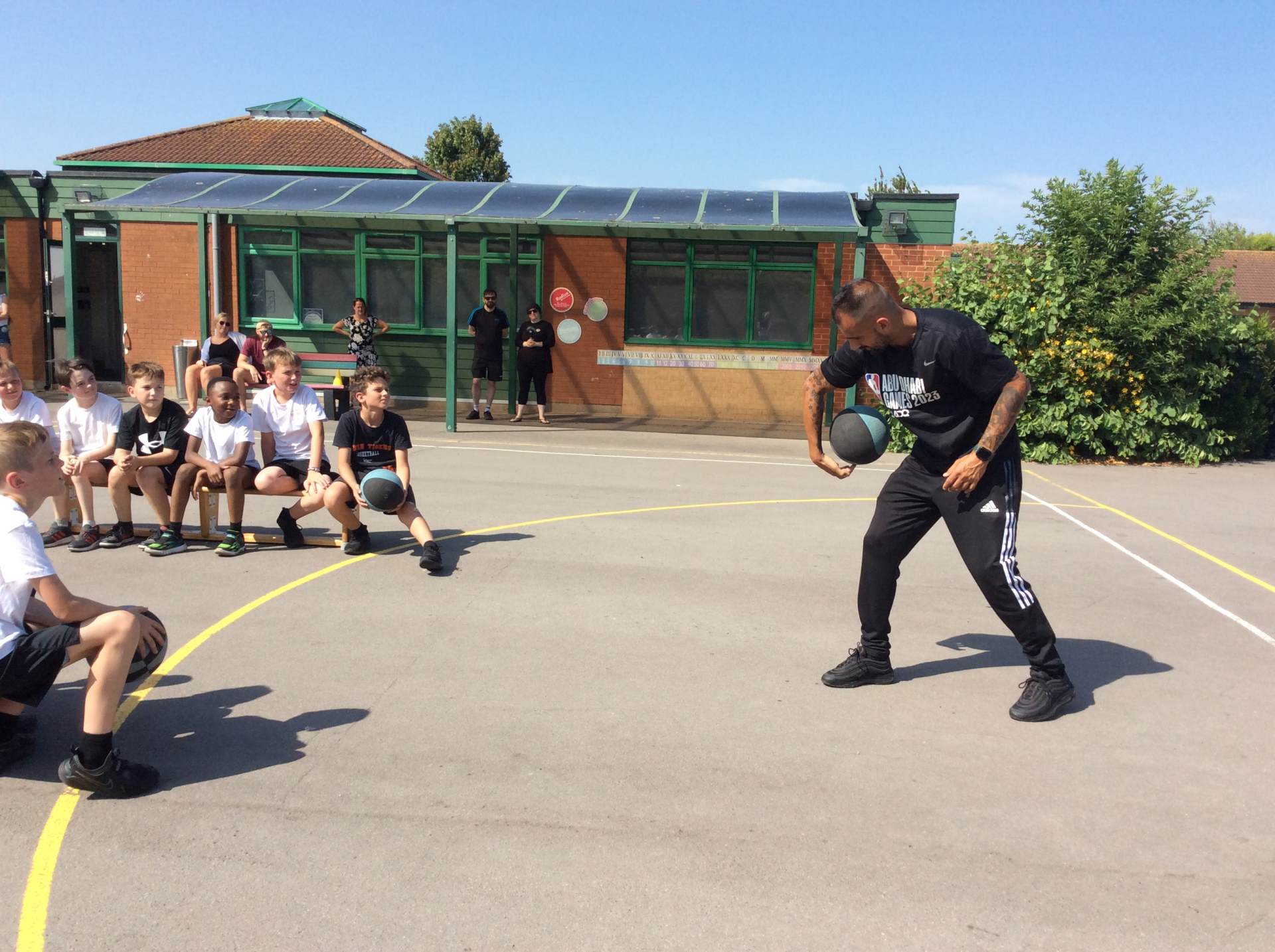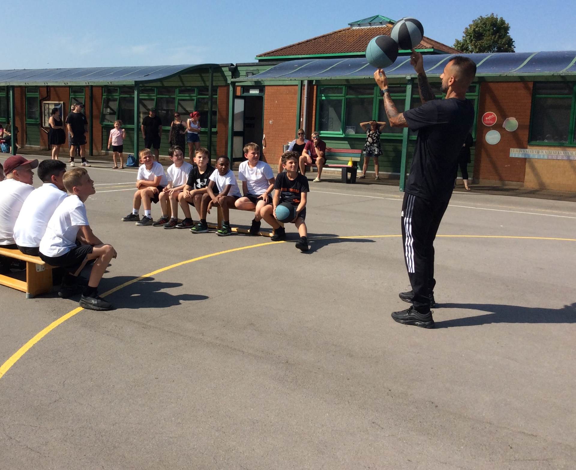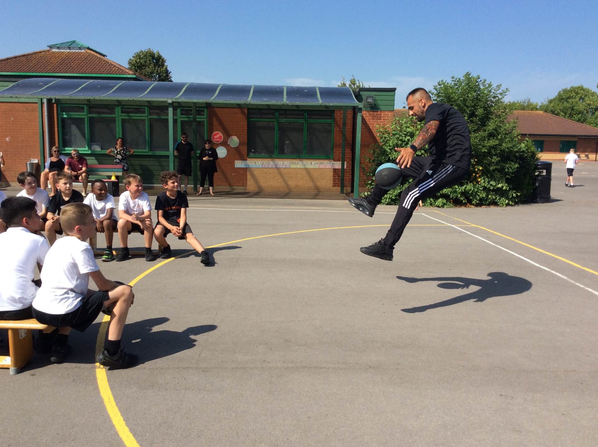 - KS2 assembly and class workshops led by Lazlo - a professional freestyle basketballer.